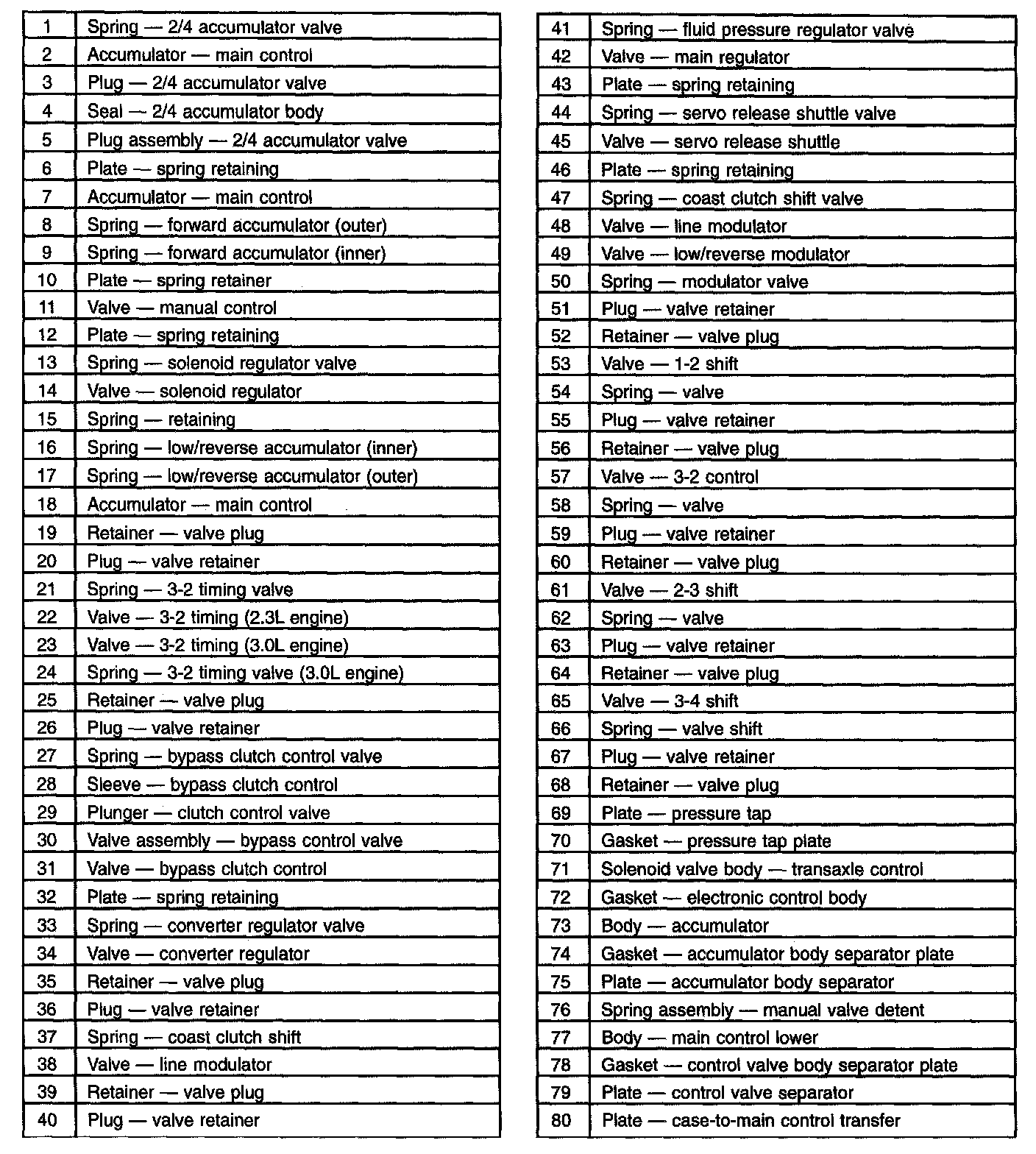 13. As necessary, disassemble the parts of the accumulator body and main control valve body assemblies.