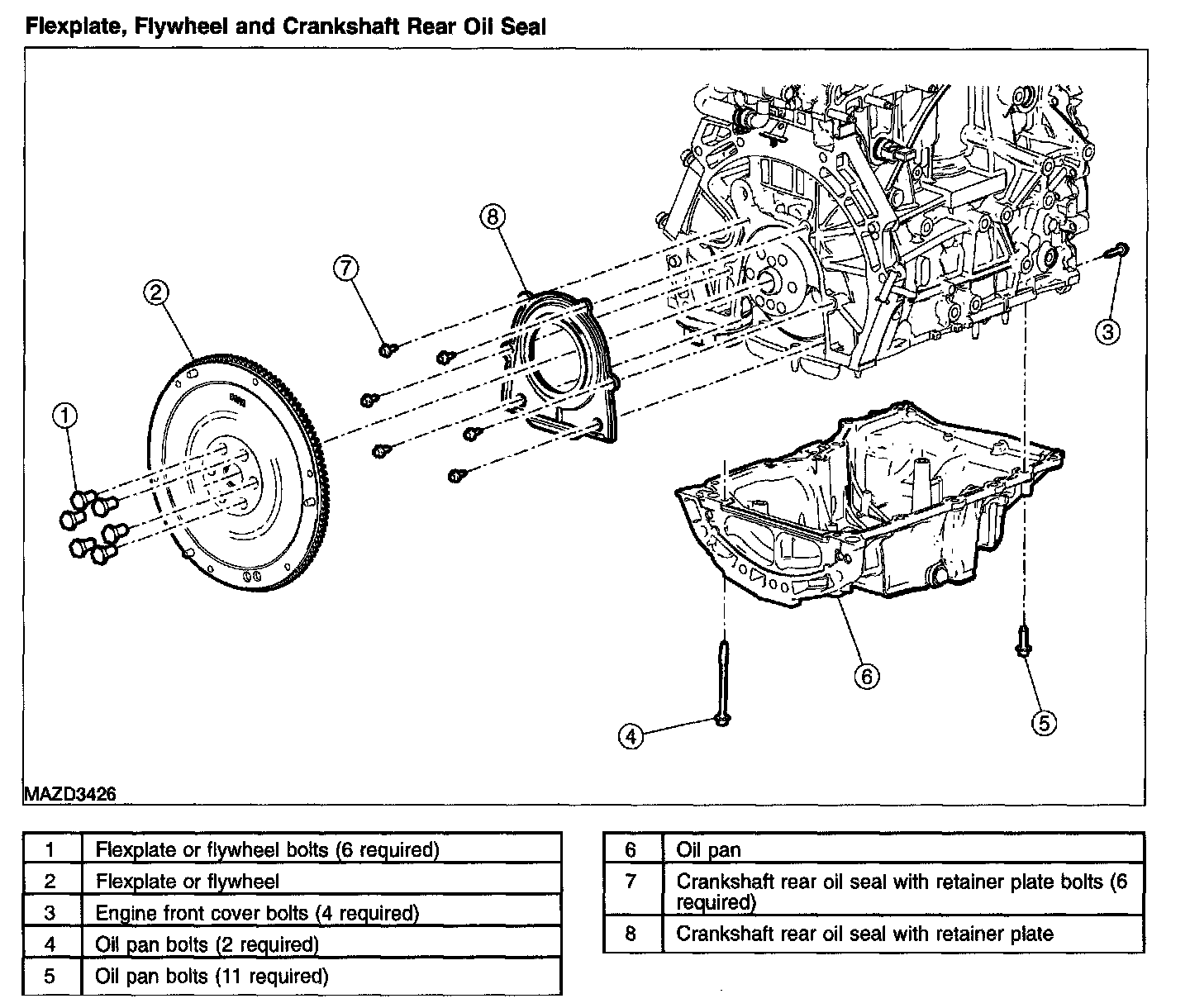 Flexplate, Flywheel and Crankshaft Rear Oil Seal: