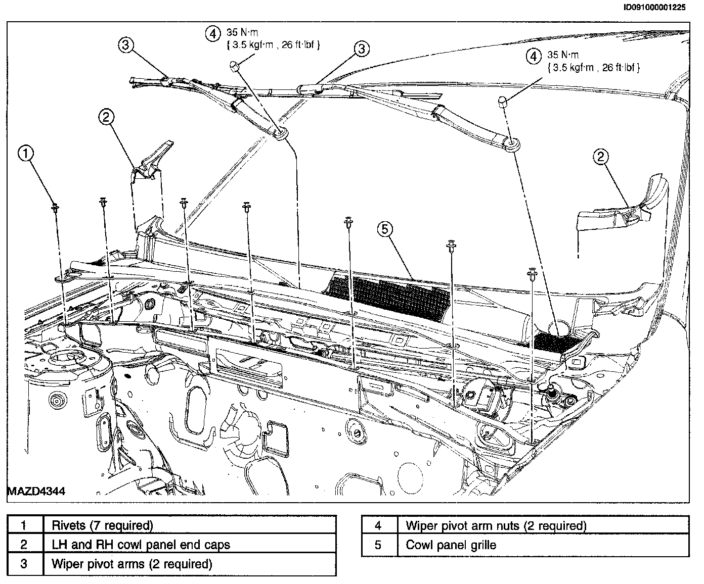 COWL PANEL GRILLE REMOVAL/INSTALLATION1. Remove the 2 wiper pivot arms nuts.