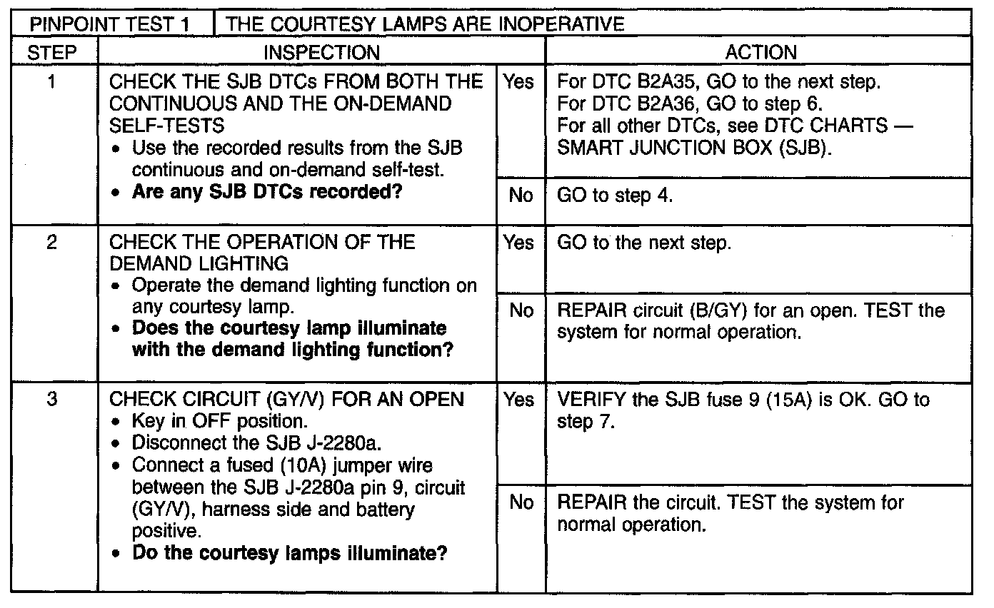 Pinpoint Test 1: The Courtesy Lamps Are InoperativeNormal Operation