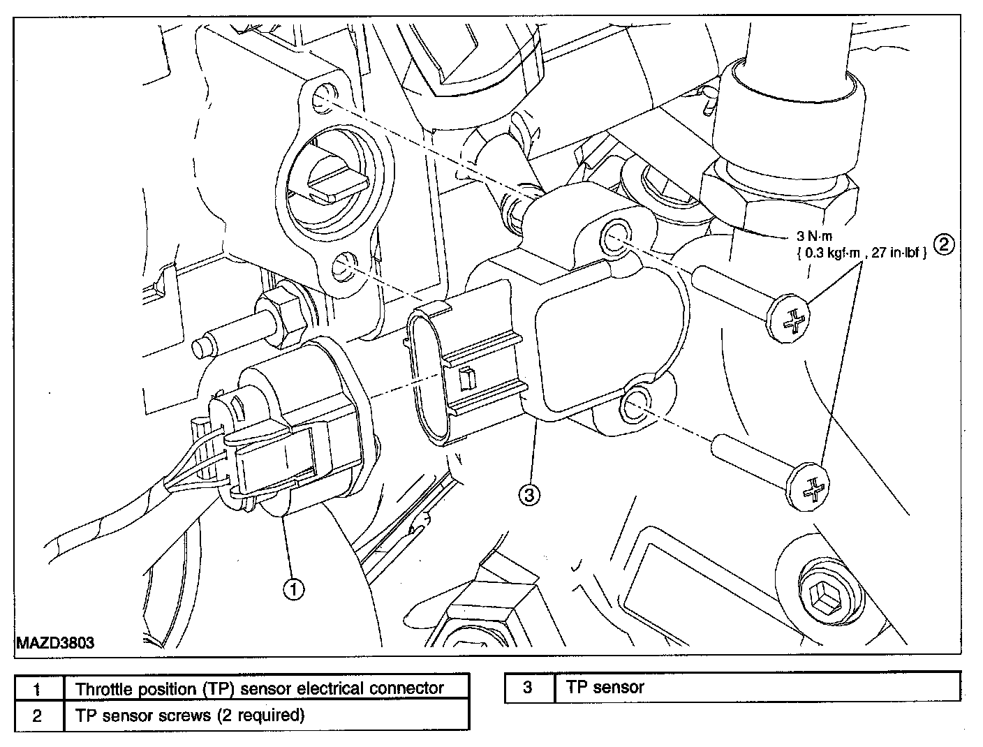 - To install, tighten to 3 N.m {0.3 kgf.m, 27 in.lbf}.