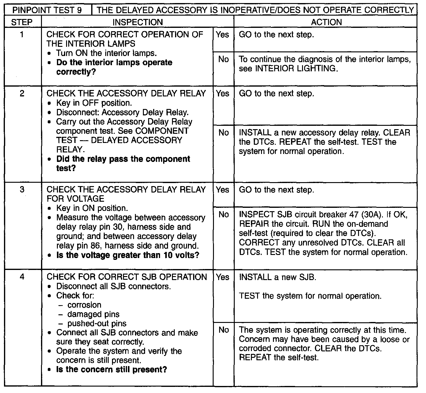 Pinpoint Test 9: The Delayed Accessory Is Inoperative/Does Not Operate Correctly