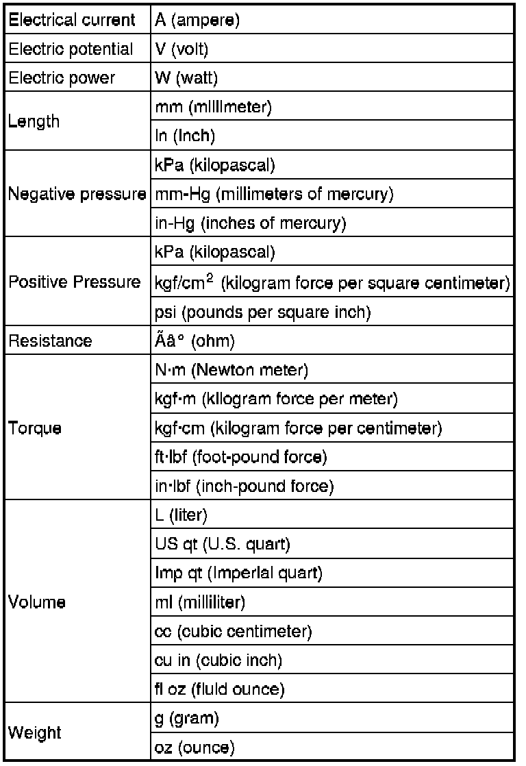 - All numerical values in this information are used on SI units. Numbers shown in conventional units are converted from these values.