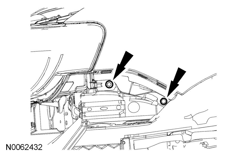 NOTE: The front door must be open to gain access to the upper rear fender bolt.