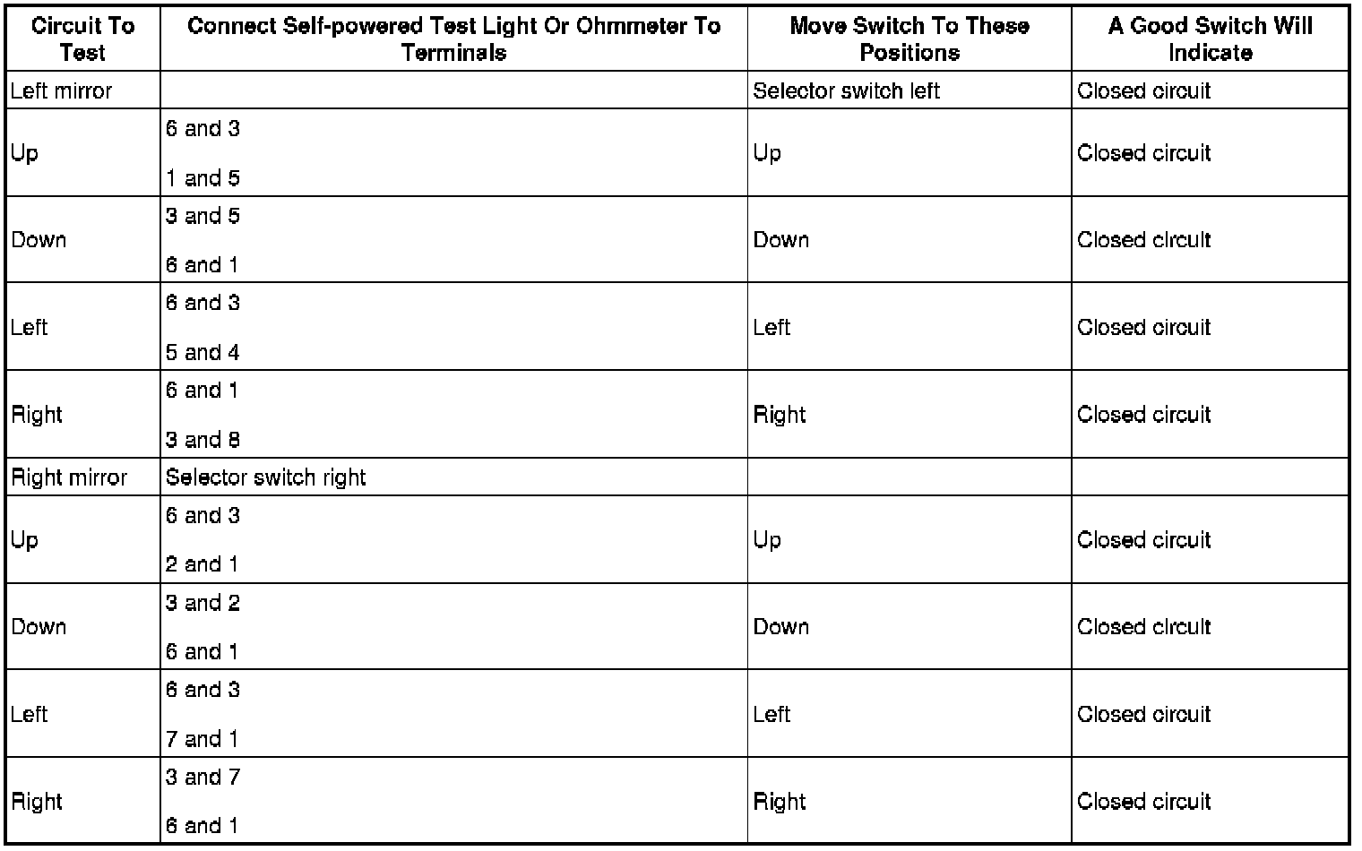 Power Mirror Switch: Testing and Inspection