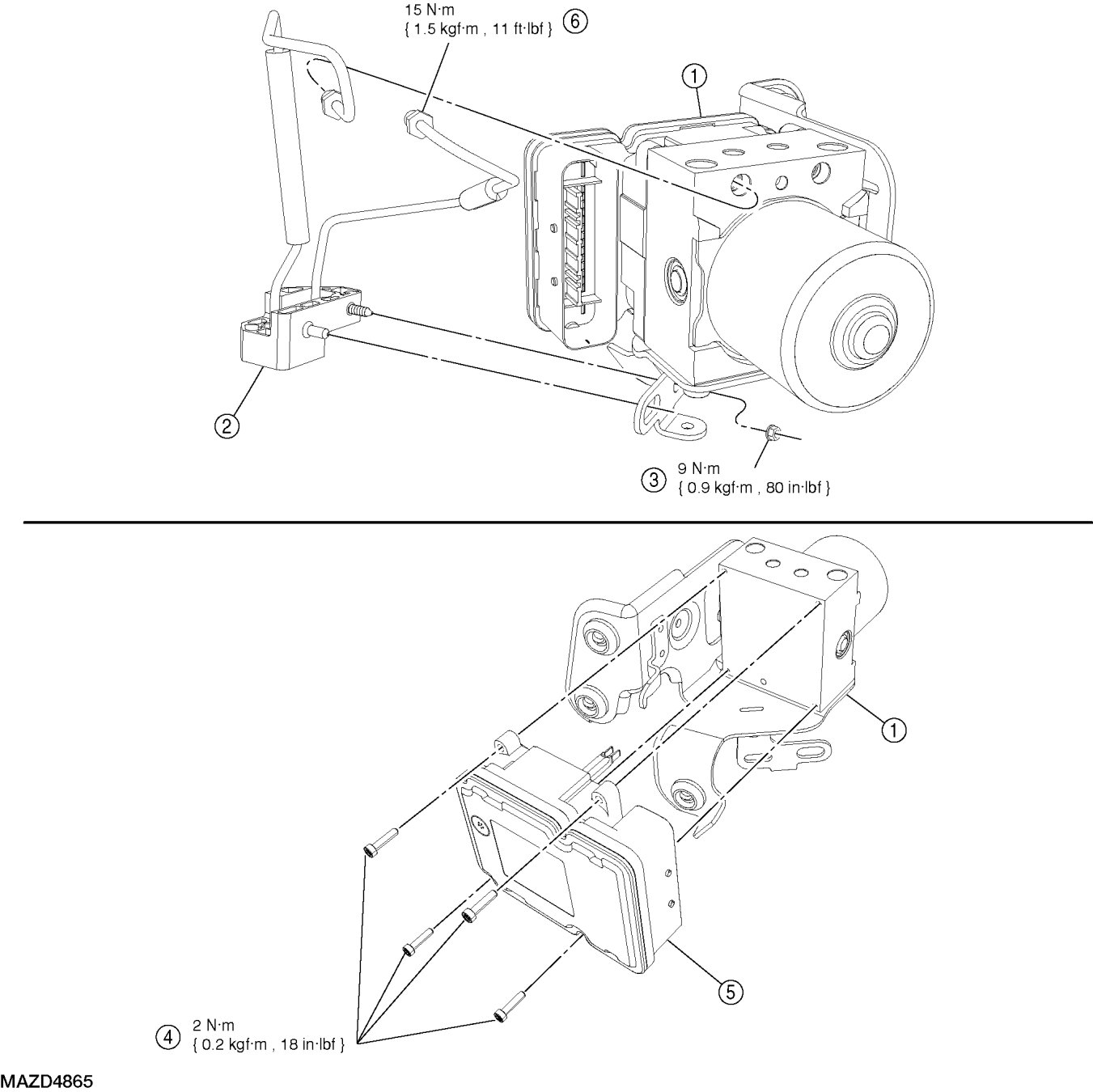 - To install, tighten to 2 Nm {0.2 kgf-m, 18 in-lbf}.