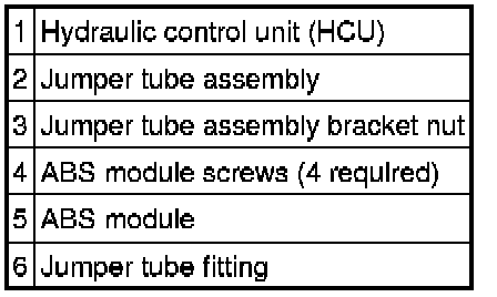 NOTE: On vehicles equipped with roll stability control (RSC), the ABS module is available separately from the HCU and should be serviced separately. However, if the RSC-equipped vehicle requires a new HCU, then the ABS module and the HCU must be installed as an assembly. Make sure to use the most recently released service parts.