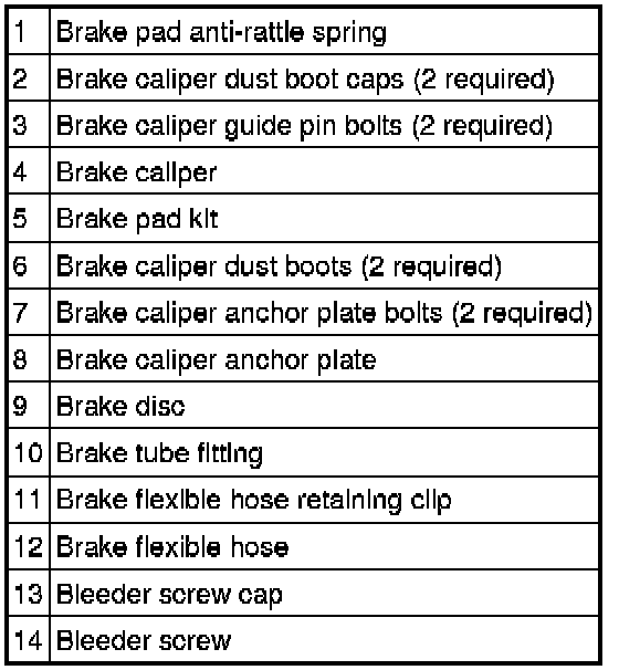 FRONT DISC BRAKE SYSTEM - EXPLODED VIEW