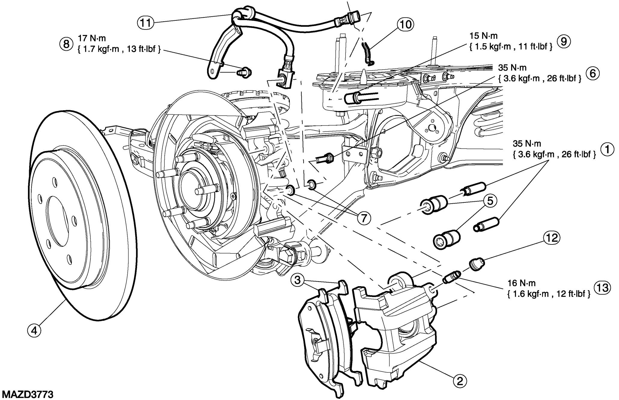 REAR DISC BRAKE SYSTEM - EXPLODED VIEW