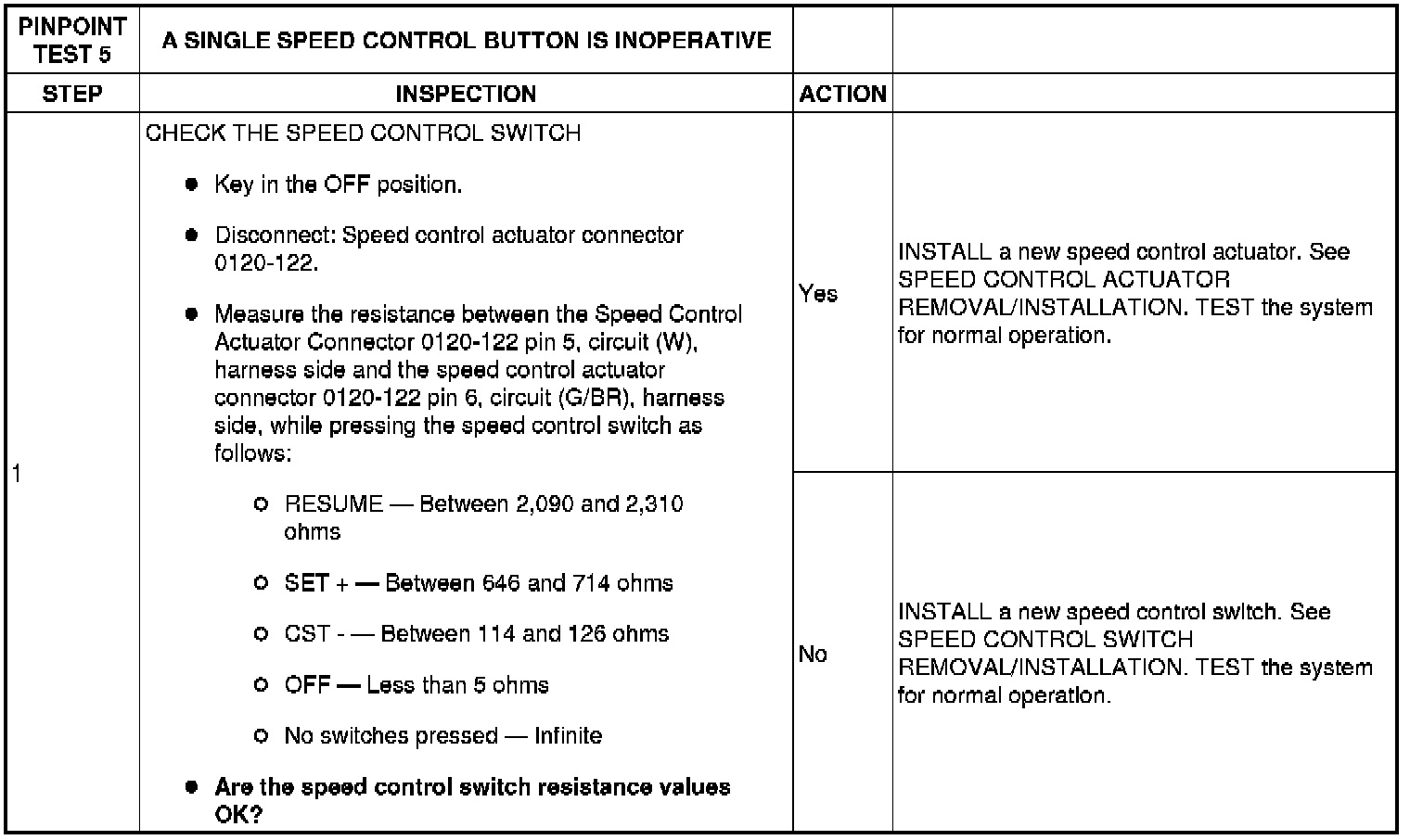 Pinpoint Test 5: A Single Speed Control Button Is Inoperative