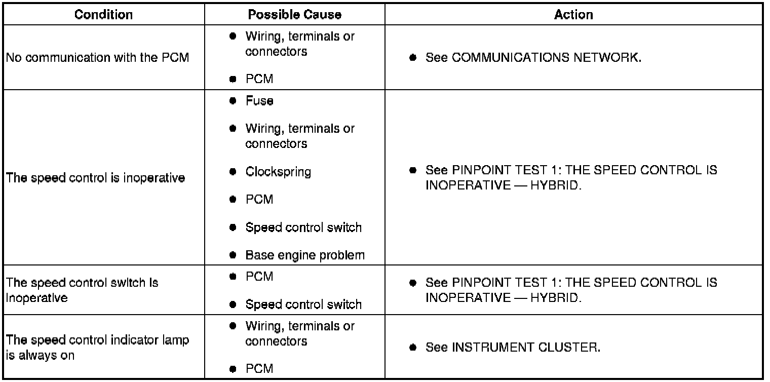 SYMPTOM TROUBLESHOOTING CHART - SPEED CONTROL - HYBRID