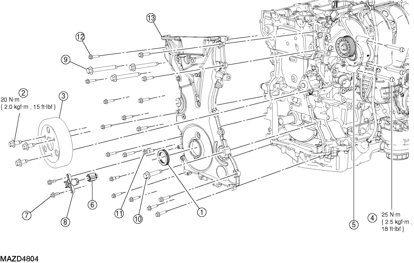 - Tighten to 25 Nm {2.5 kgf-m, 18 ft-lbf}.