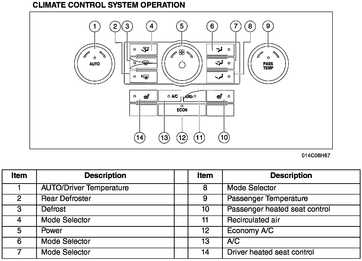 CLIMATE CONTROL SYSTEM OPERATION