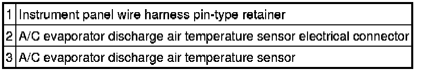 2. Detach the instrument panel wire harness pin-type retainer and position the wire harness away from the evaporator discharge air temperature sensor.