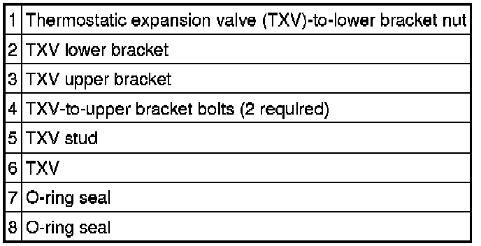NOTE: The auxiliary thermostatic expansion valve (TXV) is not interchangeable with the front (main) system TXV.