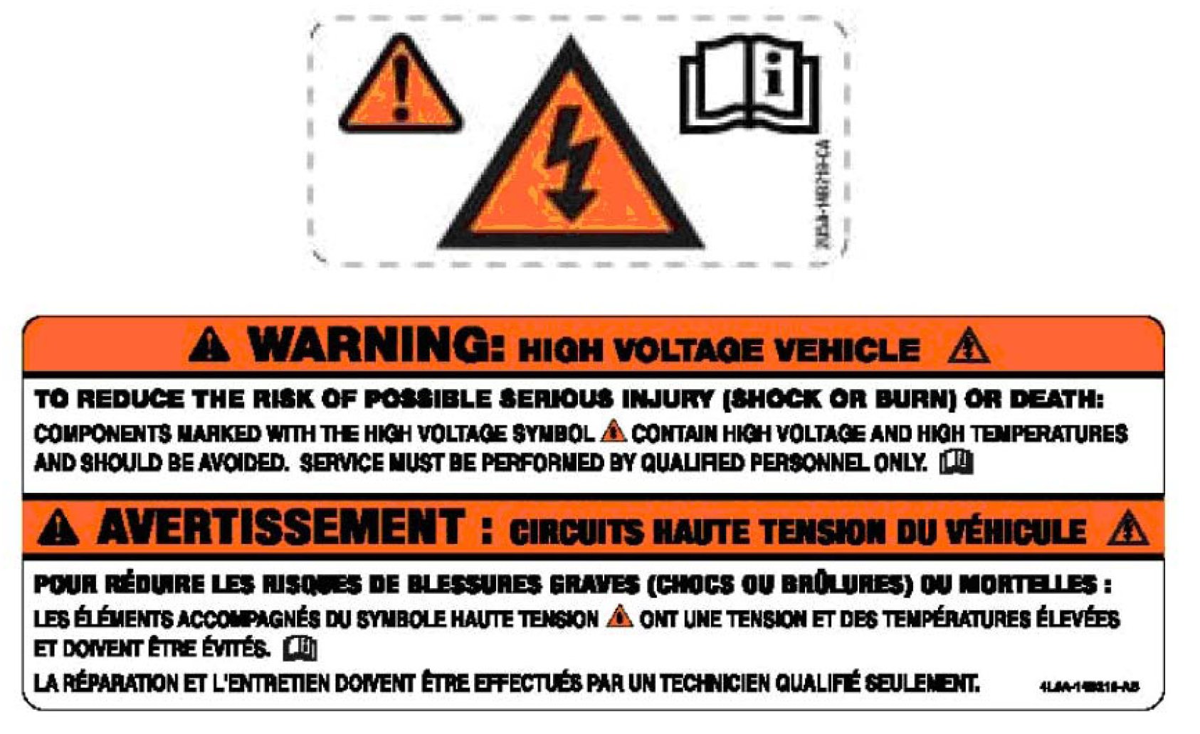 Warning decals, as shown here, will be located on components included in the high voltage system.