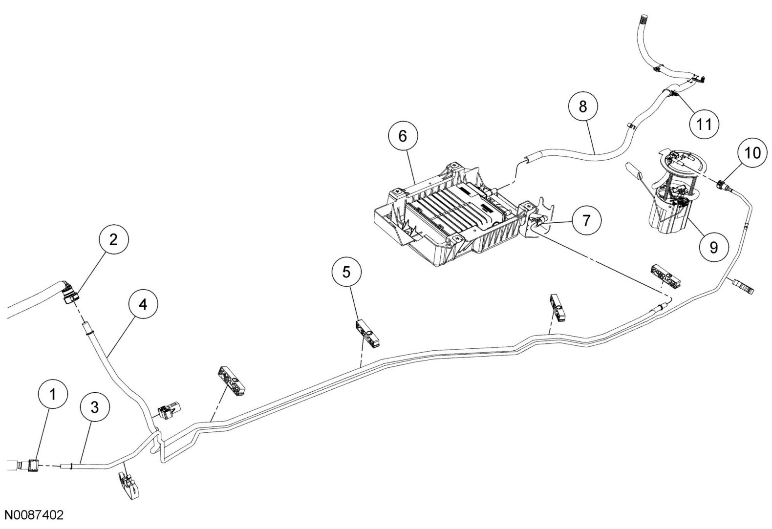 FUEL LINES AND FUEL FILTER EXPLODED VIEW - HYBRID