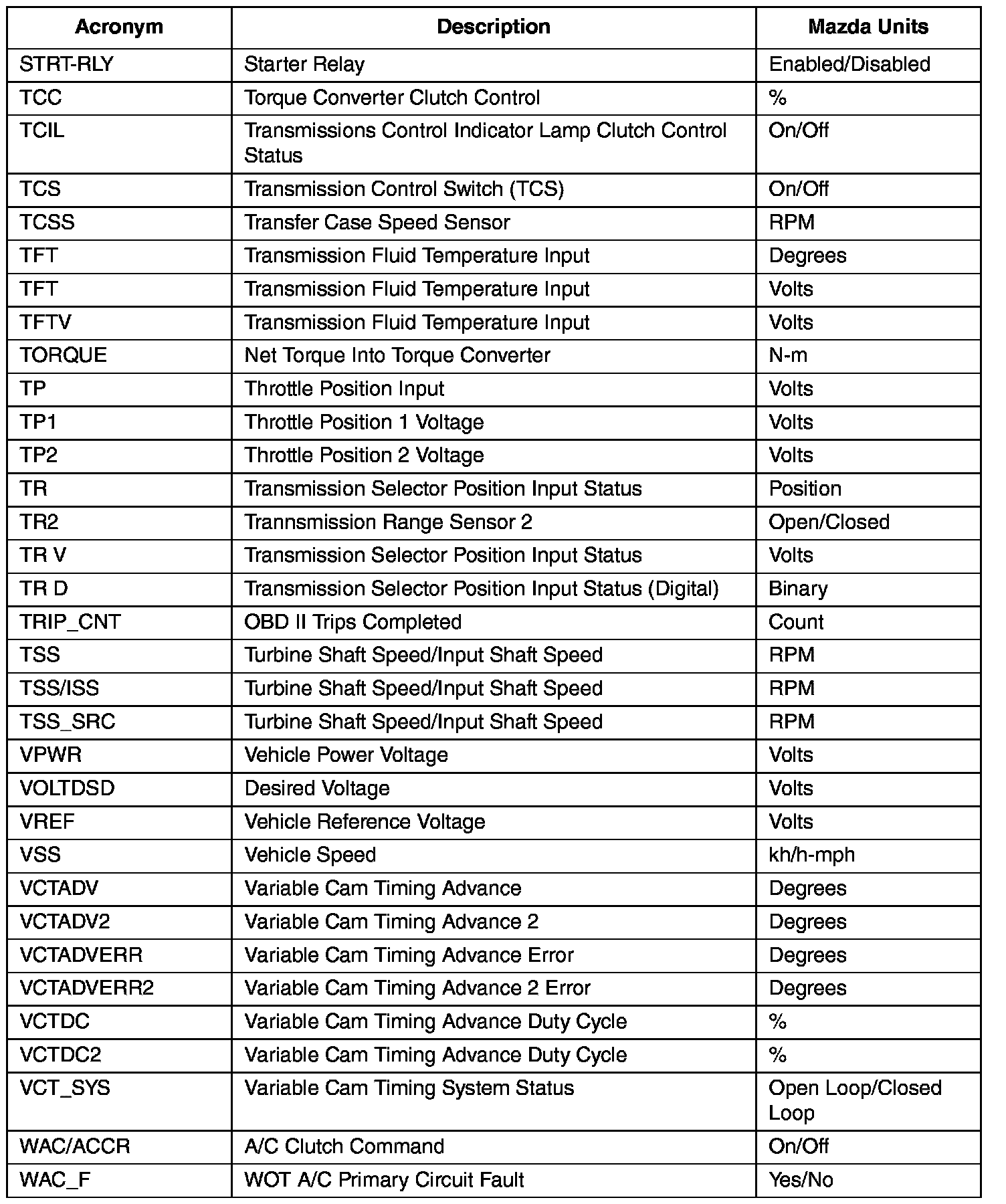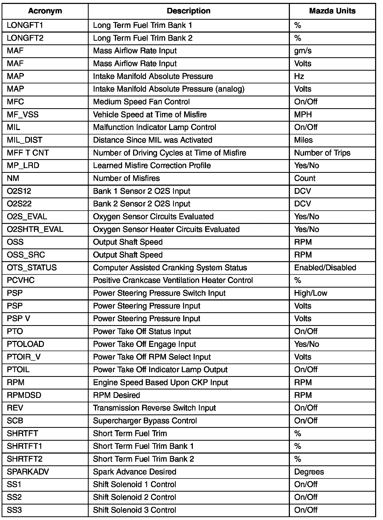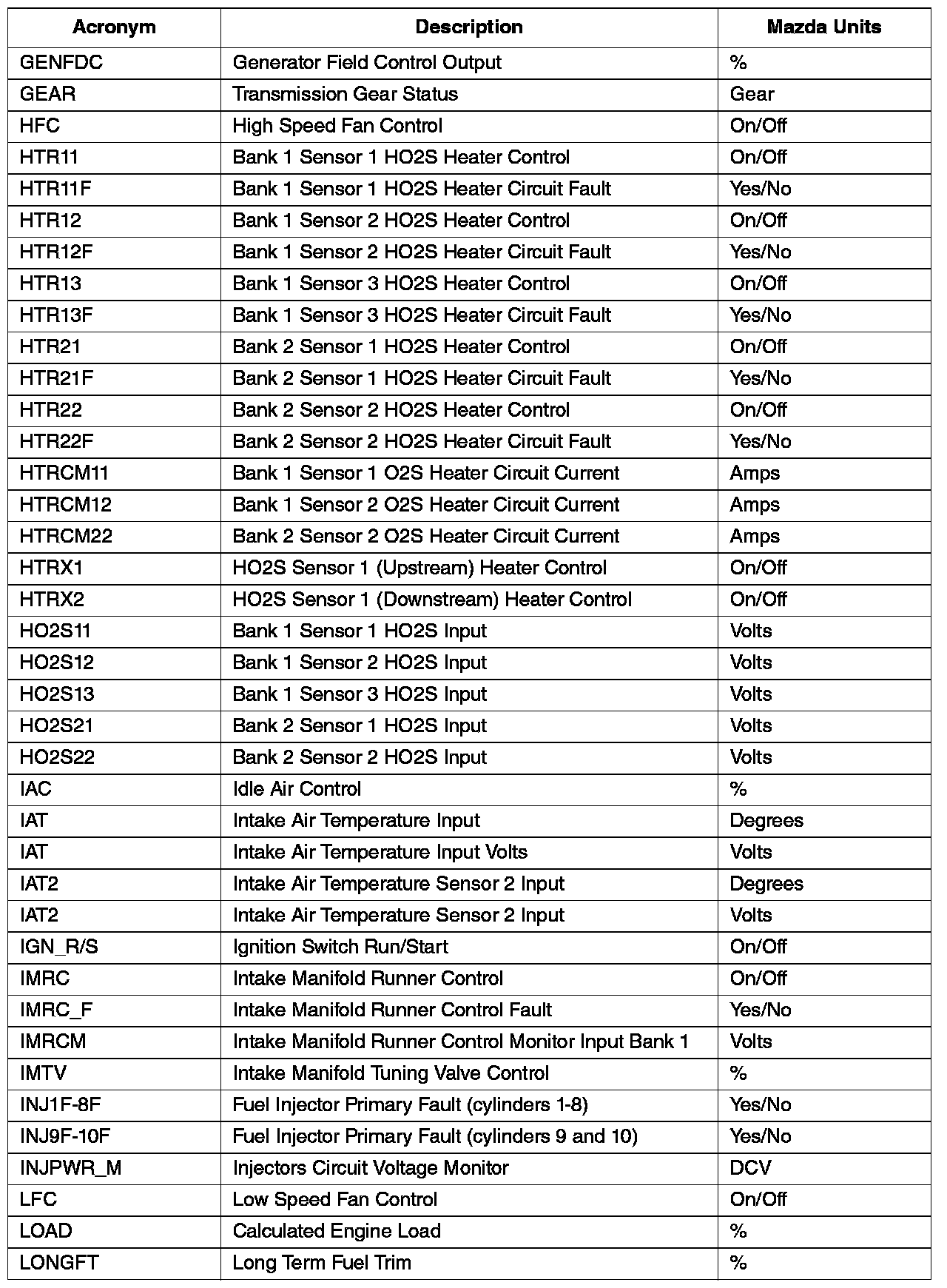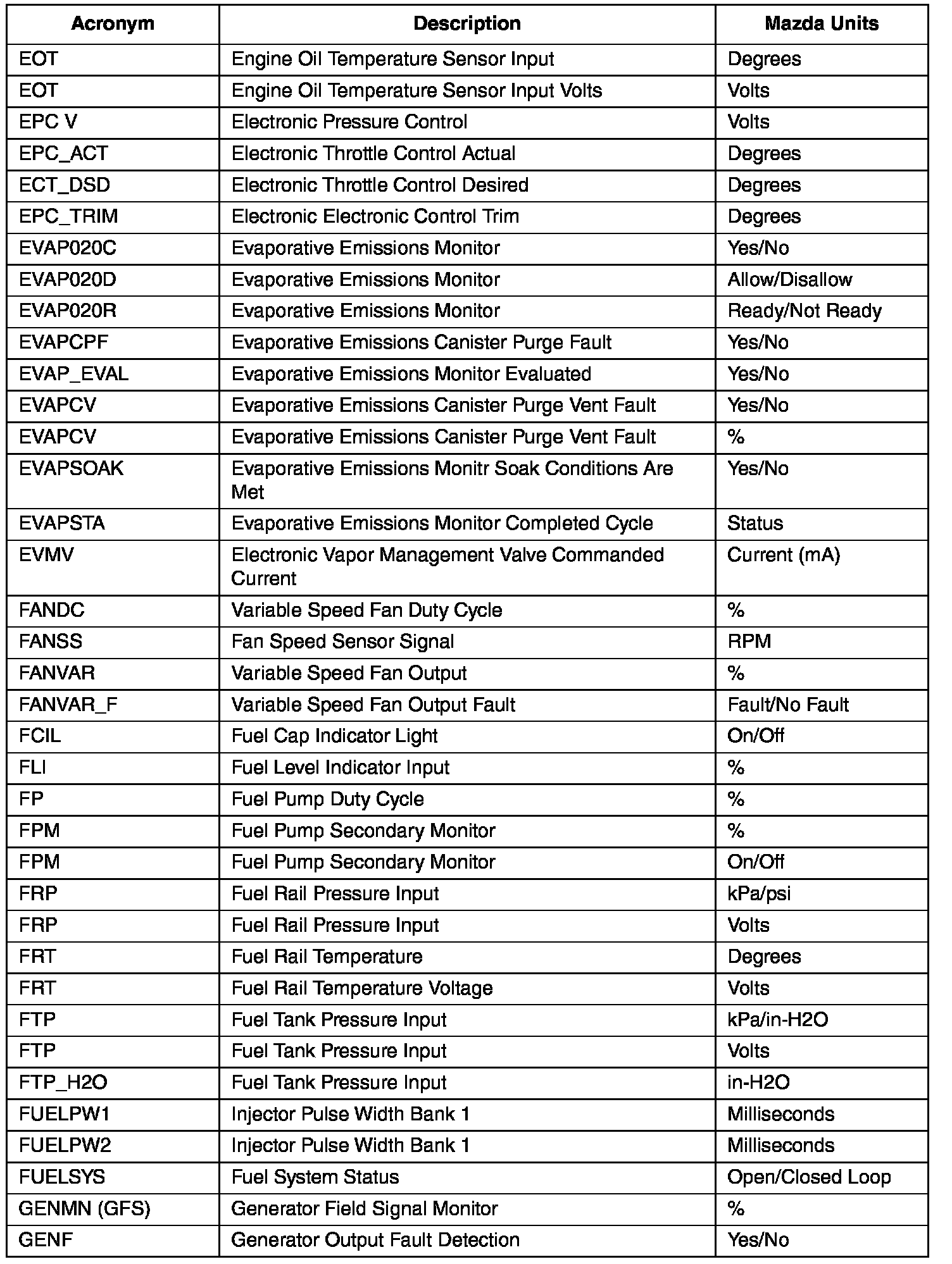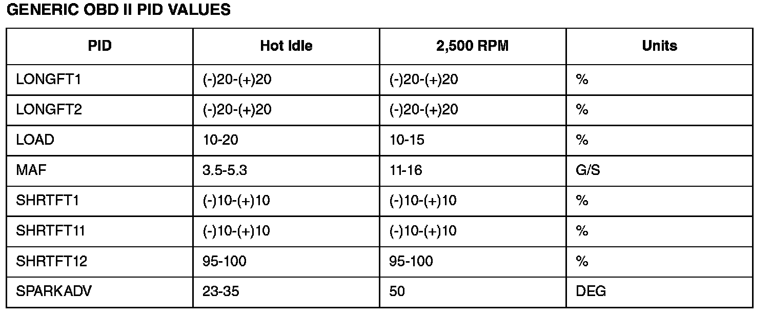 GENERIC OBD II PID VALUES