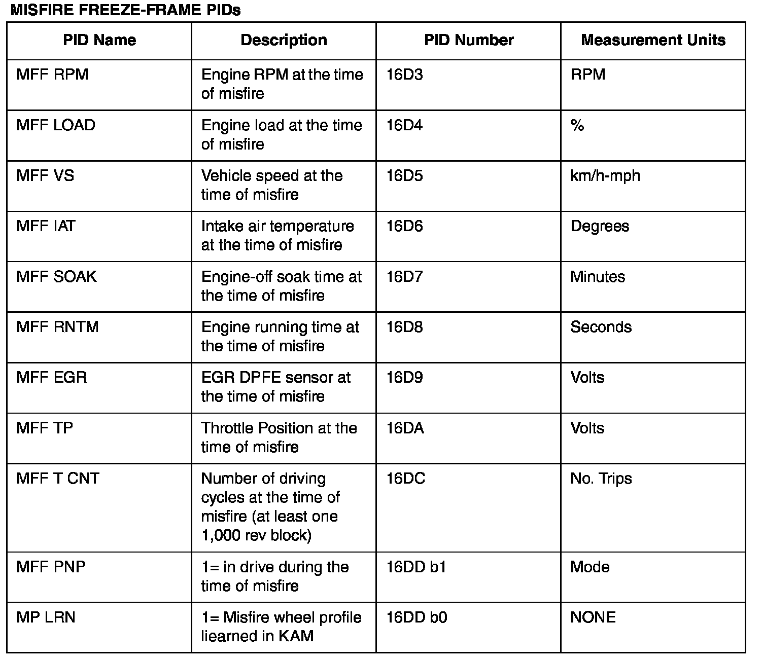 MISFIRE FREEZE-FRAME PIDs