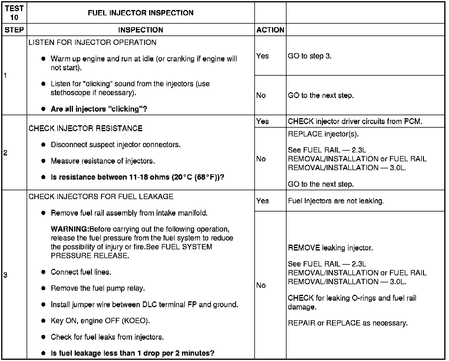 Test 10: Fuel Injector Inspection