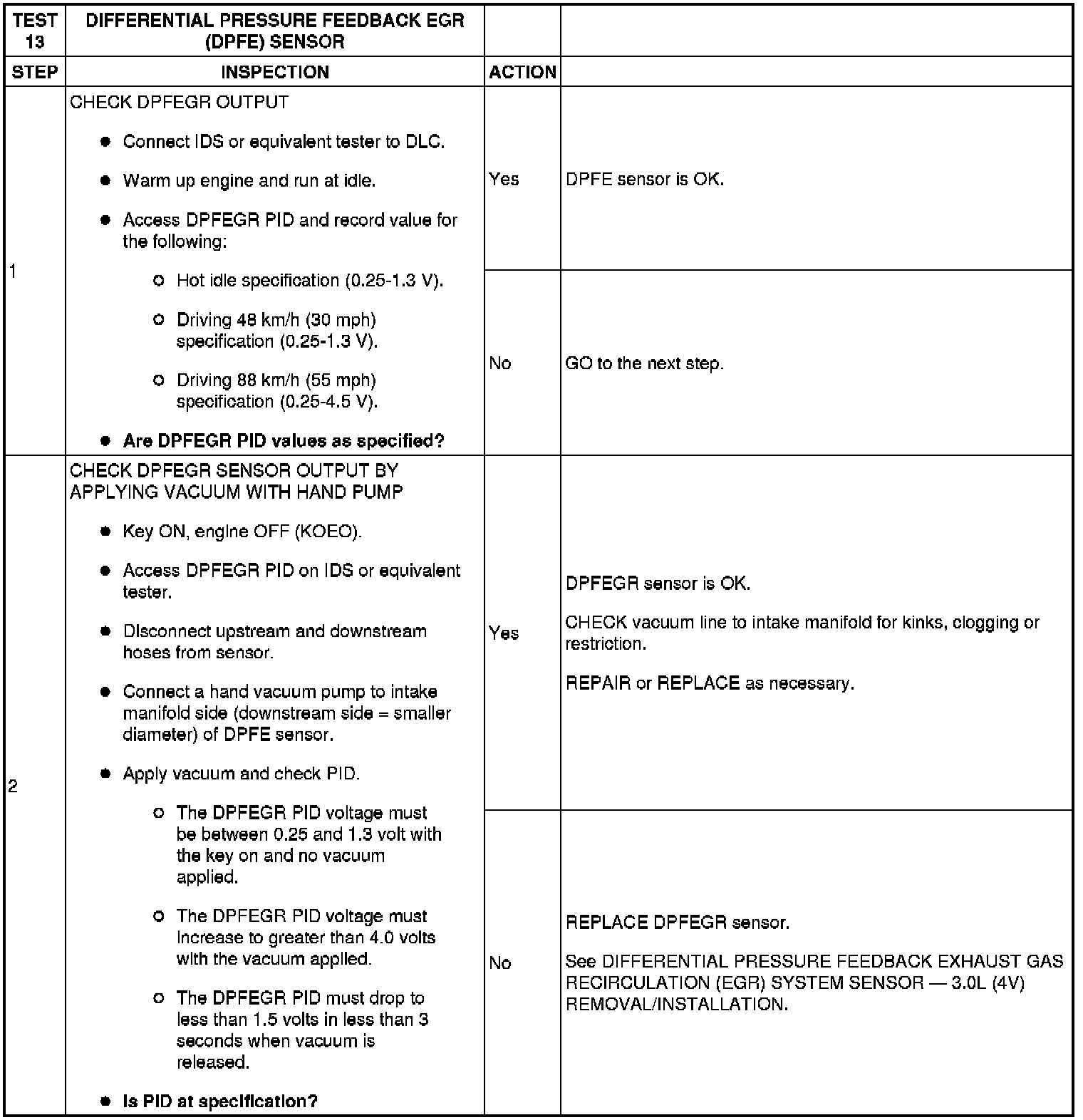 TEST 13: DIFFERENTIAL PRESSURE FEEDBACK EGR (DPFE) SENSOR