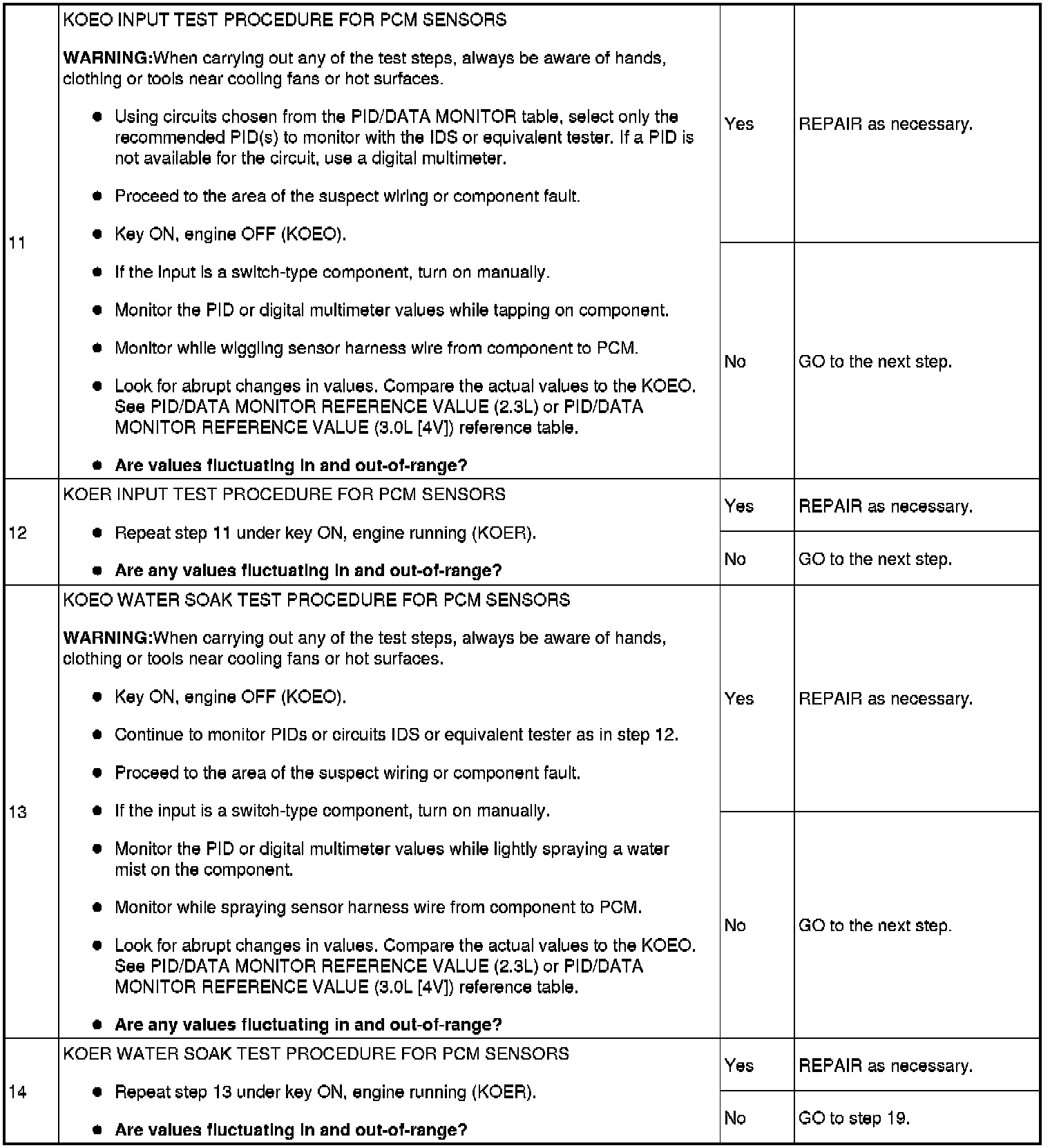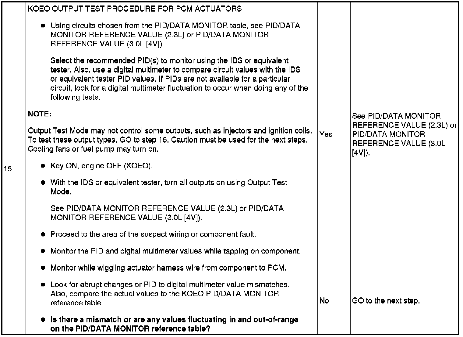 NOTE: PIDs selected from the PID/DATA MONITOR table will display commanded values only. Digital multimeter measurements will display actual values.