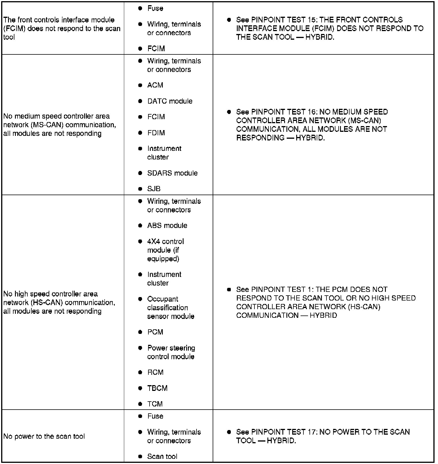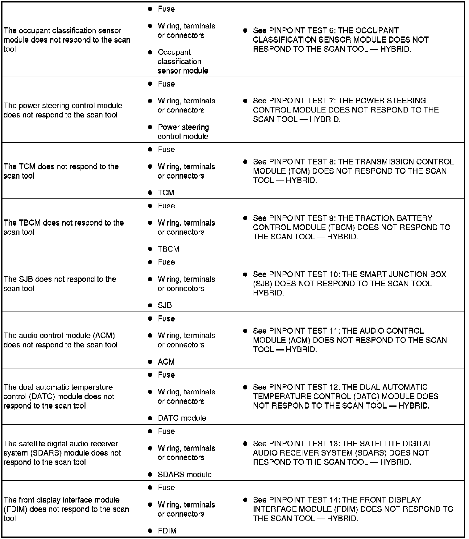 SYMPTOM TROUBLESHOOTING CHART - HYBRID