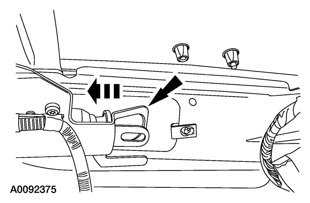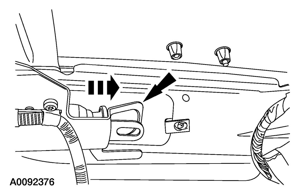NOTE: If equipped with a moonroof and/or rear window wiper assembly, do not pinch the front moonroof drain hose and/or rear window washer solvent hose.