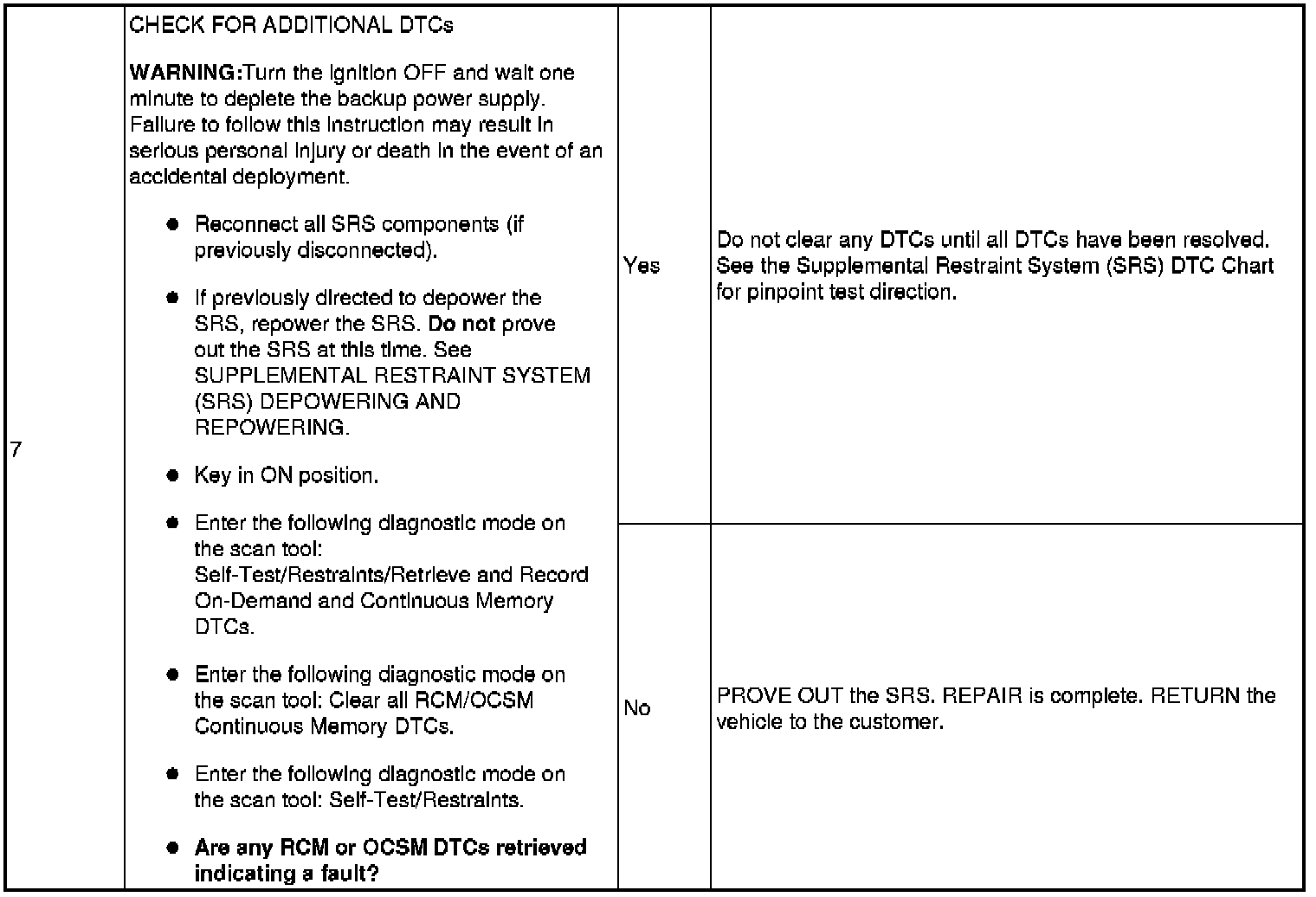 NOTE: The supplemental restraint system (SRS) must be fully operational and free of faults before releasing the vehicle to the customer.