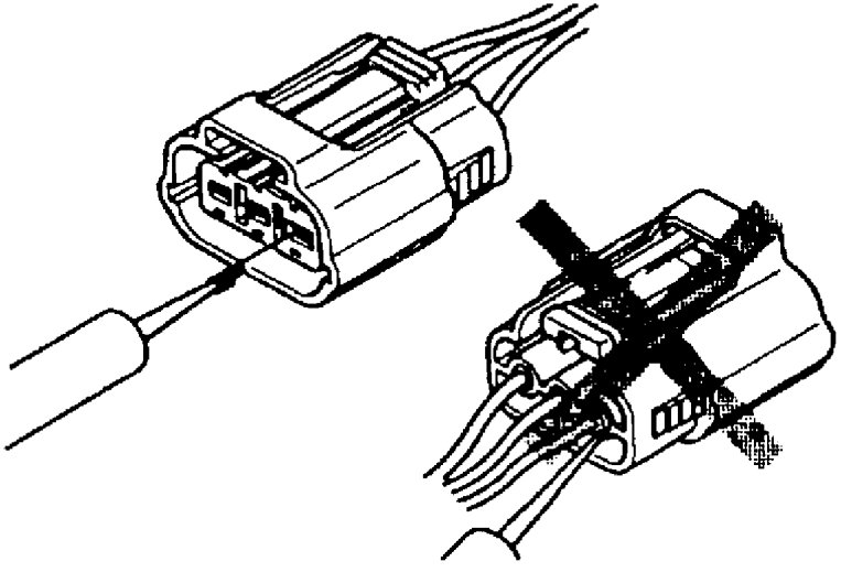 - When a tester is used for checking continuity or measuring voltage, insert the tester probe from the wiring harness side.