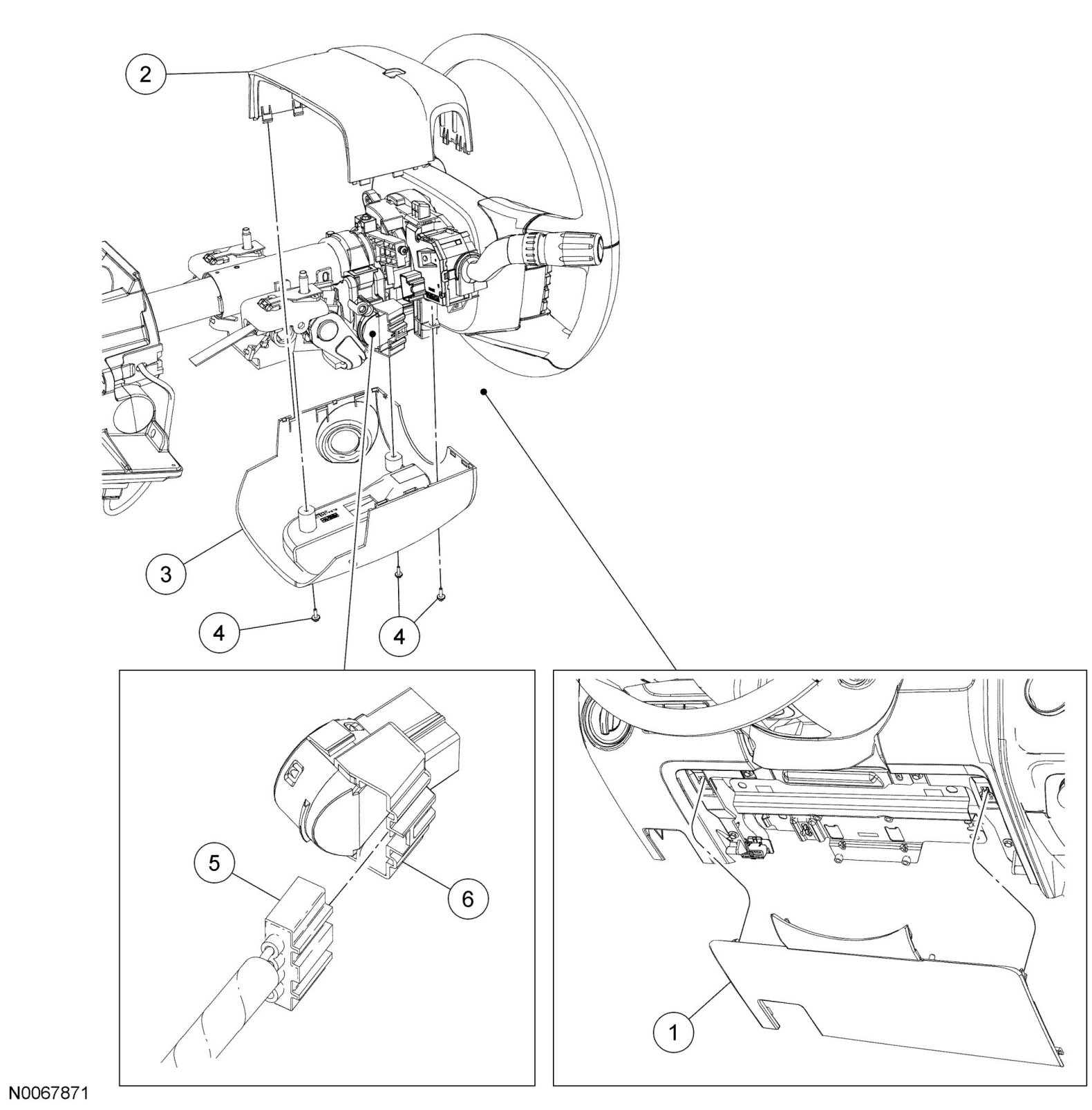 4. Remove the upper and lower steering column shrouds.
