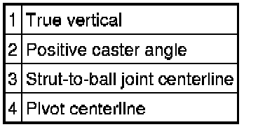 Caster is the deviation from vertical of an imaginary line drawn through the pivot points (top of strut and lower ball joint), when viewed from the side. The caster specifications will give the vehicle the best directional stability characteristics when loaded and driven. The caster setting is not related to tire wear. The caster setting is not adjustable.