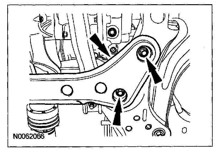 CAUTION: Suspension and subframe fasteners are critical parts because they affect performance of vital parts and systems and their failure can result in major service expense. A new part with the same part number must be installed if installation becomes necessary. Do not use a replacement part of lesser quality or substitute design. Torque values must be used as specified during reassembly to make sure of correct retention of these parts.