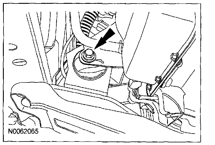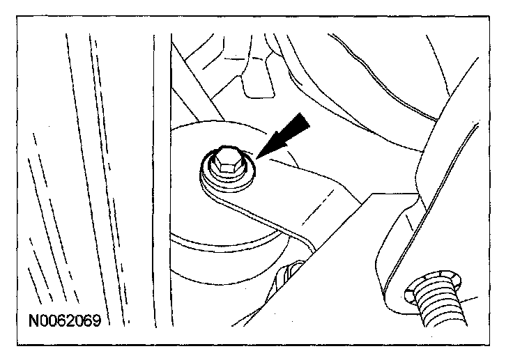 10. Remove the nut and the engine support cross-member. Discard the nut