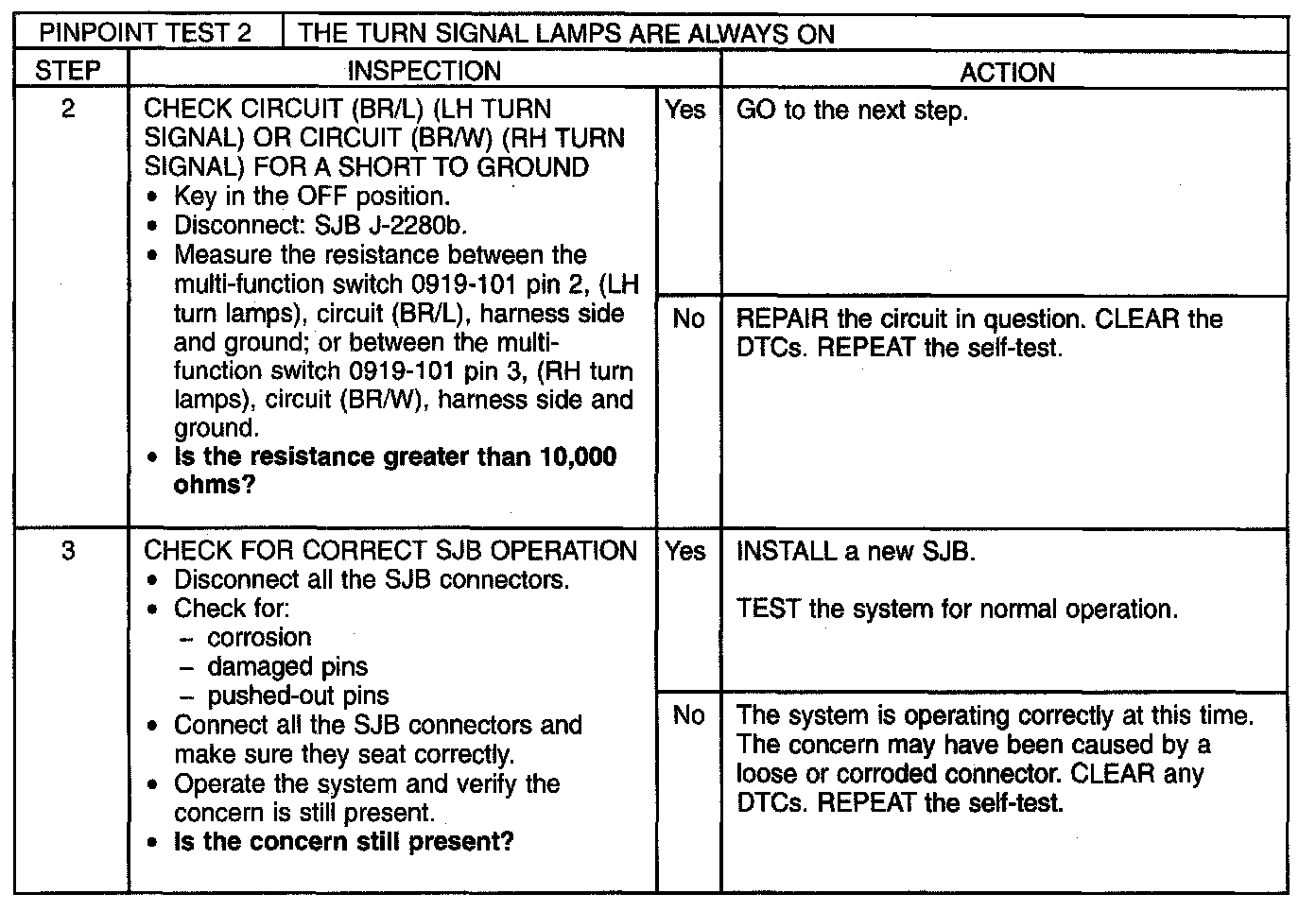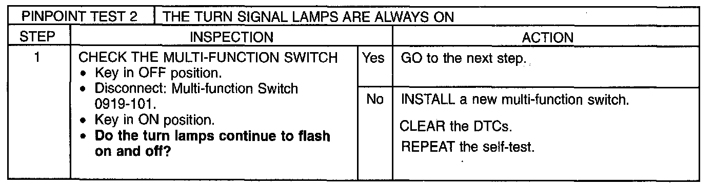 PINPOINT TEST 2: THE TURN SIGNAL LAMPS ARE ALWAYS ONNormal Operation