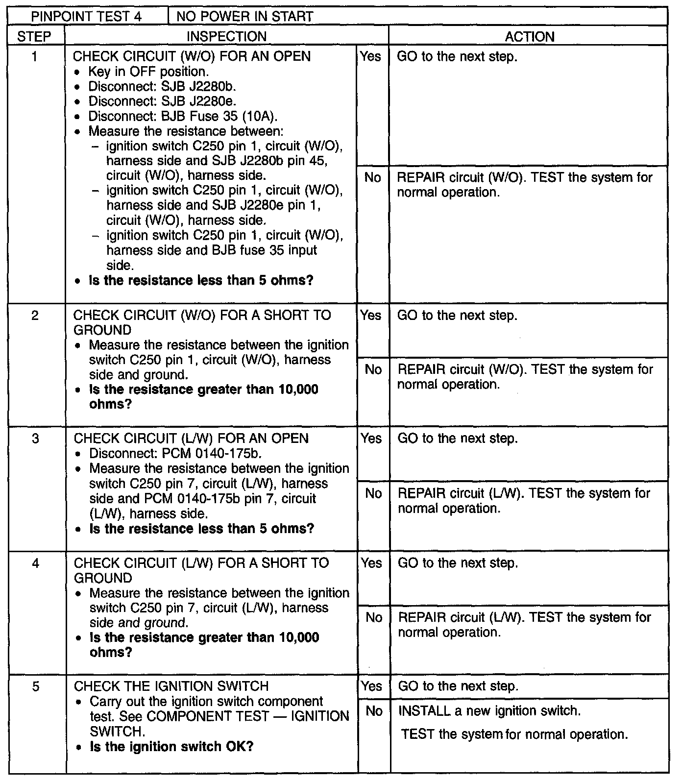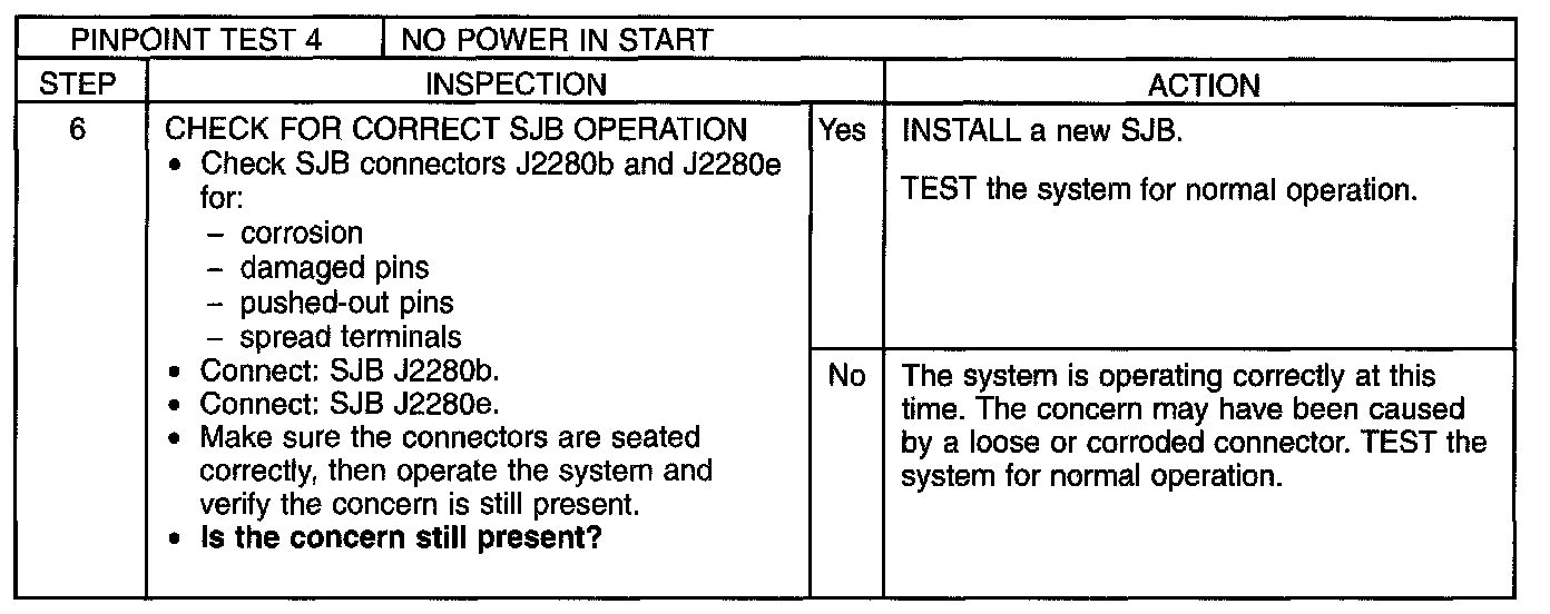 PINPOINT TEST 4: NO POWER IN STARTNormal Operation
