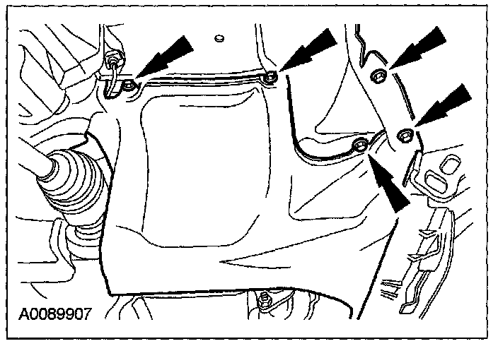 2. Remove the 5 bolts, the pin-type retainer (not shown) and the RH splash shield.