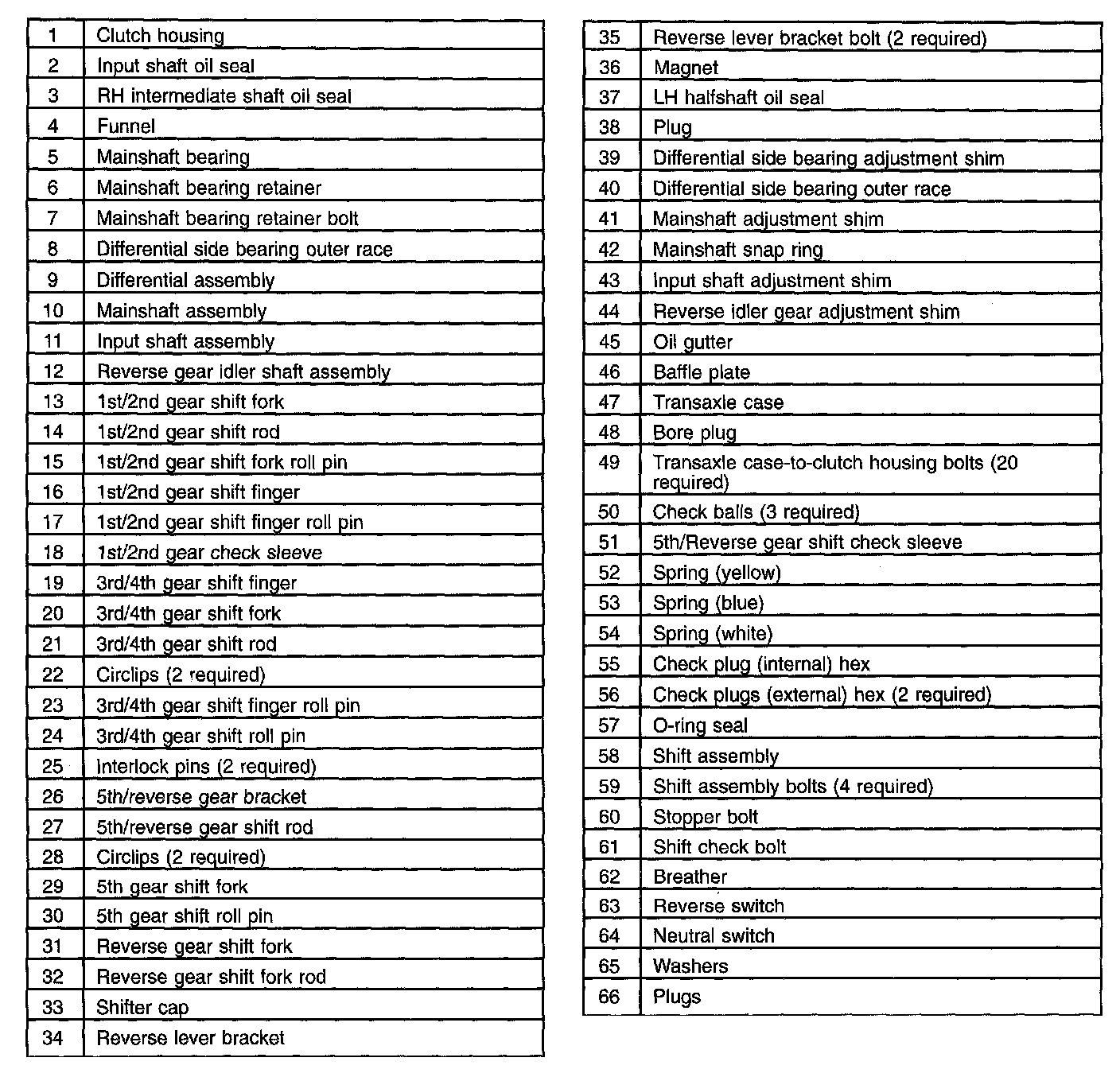 ^ Visually inspect all parts for any damage, deformation or abnormal wear. Replace any unsuitable parts with new parts only or damage to the transaxle may occur.