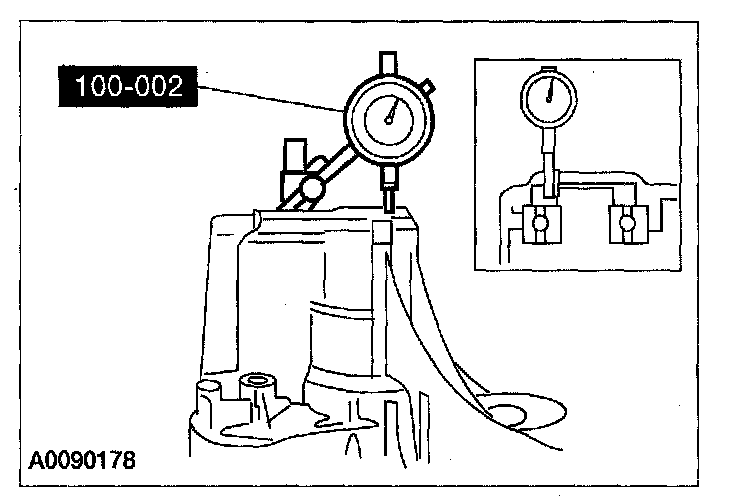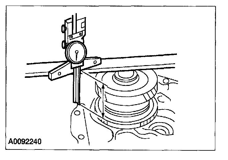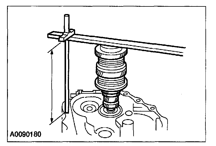 43. Using the special tool, measure and record the depth of the transaxle case to the mainshaft bearing surface when the circlip is expanded and mainshaft is raised to contact the transaxle case.