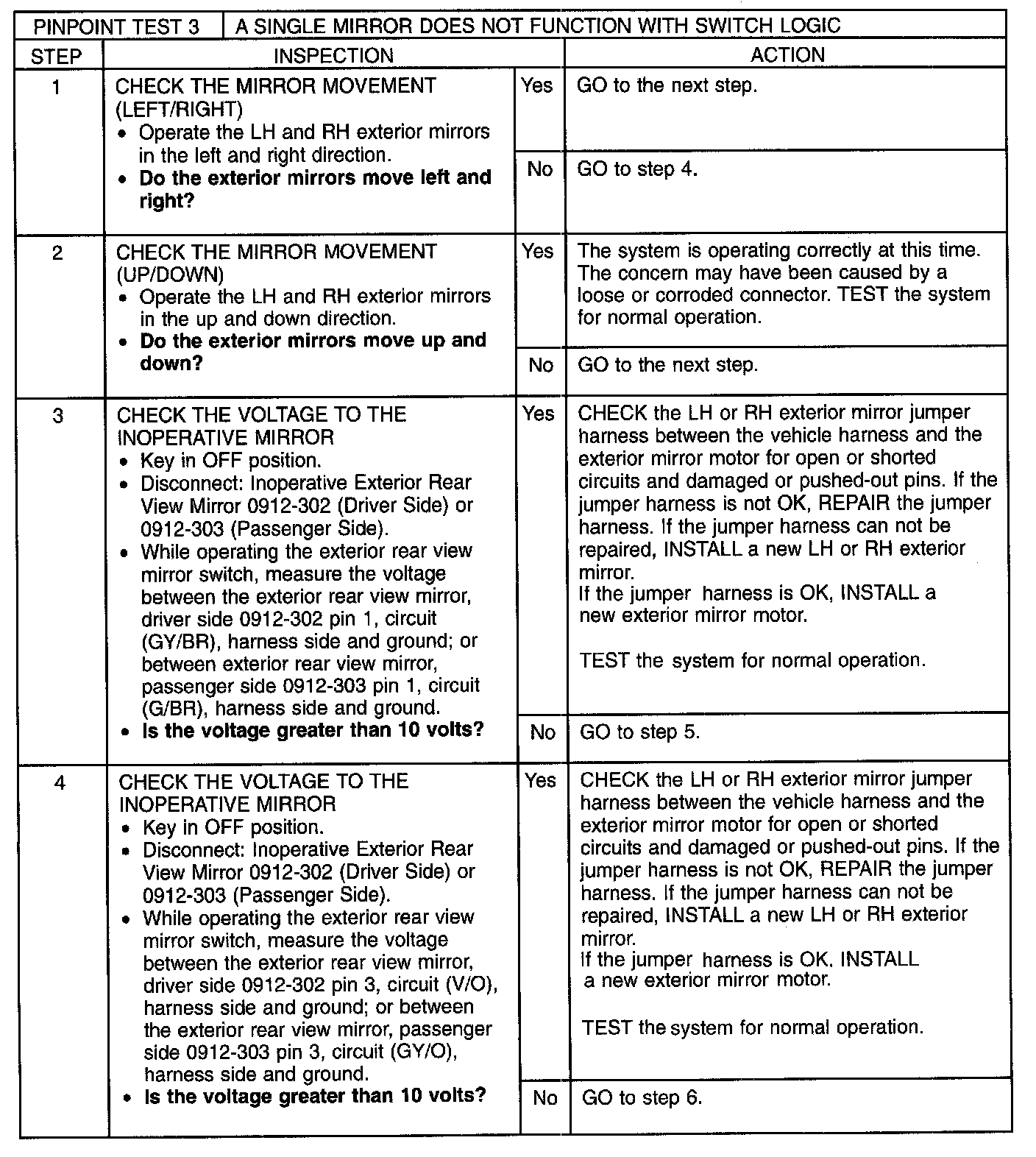- When power is directed through circuit (V/O)/(GY/O) and ground through circuit (GY), the LH/RH exterior mirror operates left.