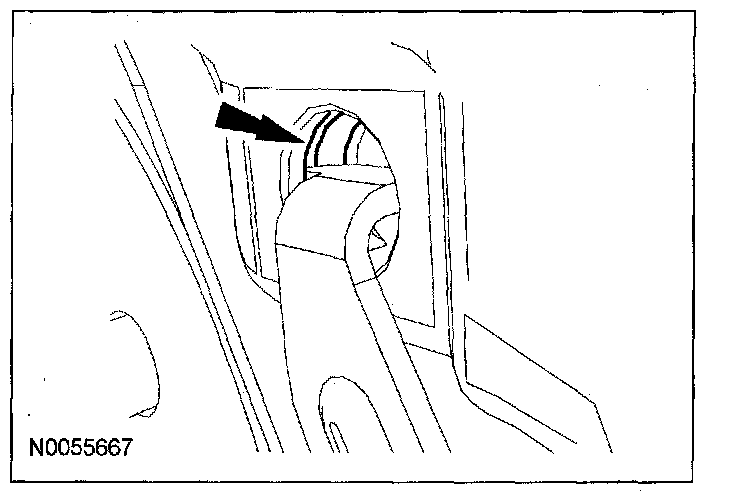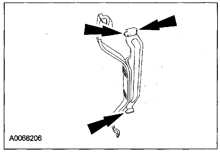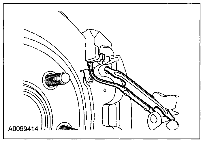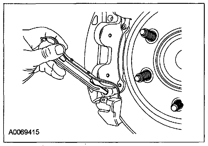 (2) Twist the tab into the cavity (LH side in the upper brake caliper cavity, RH side in the lower brake caliper cavity).