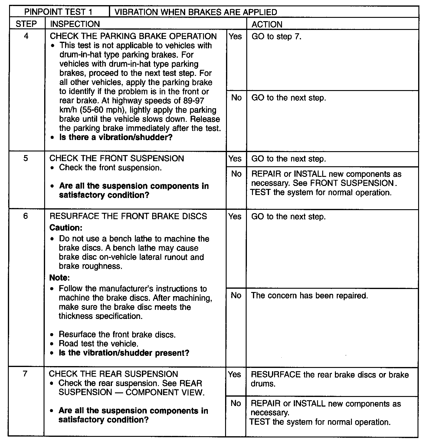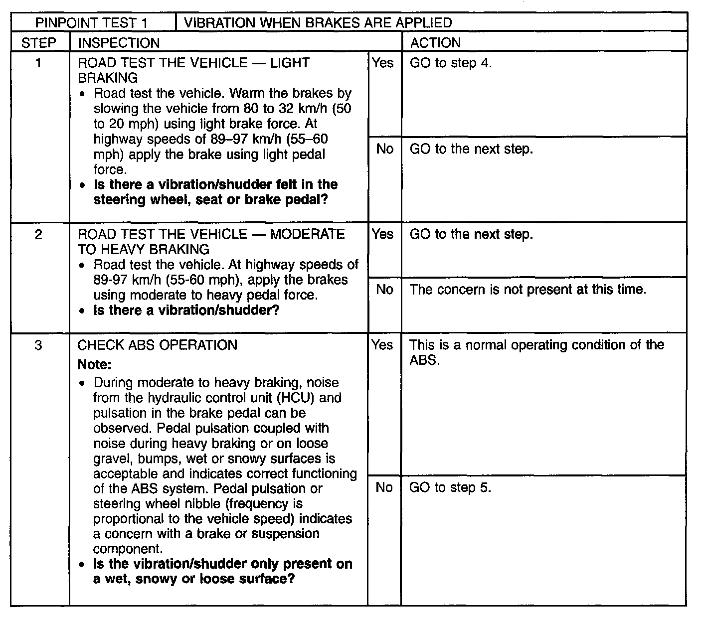 PINPOINT TEST 1: VIBRATION WHEN BRAKES ARE APPLIEDNormal Operation