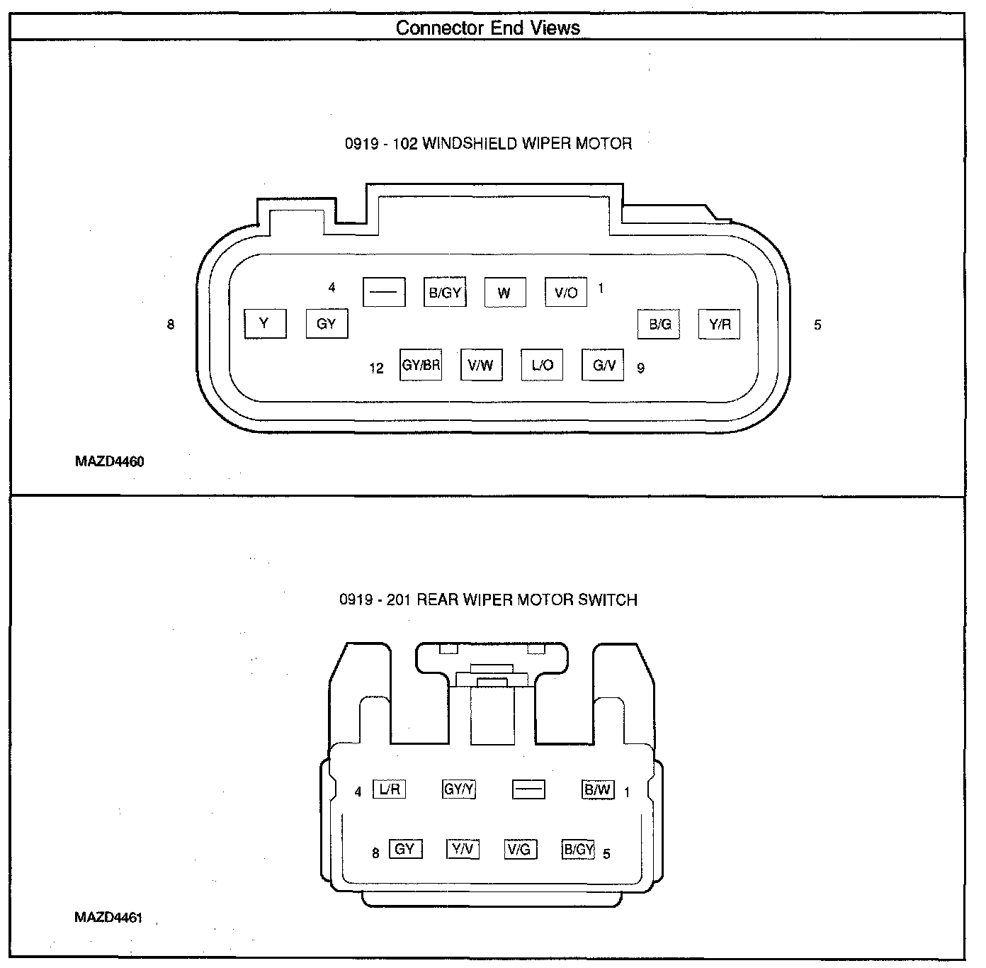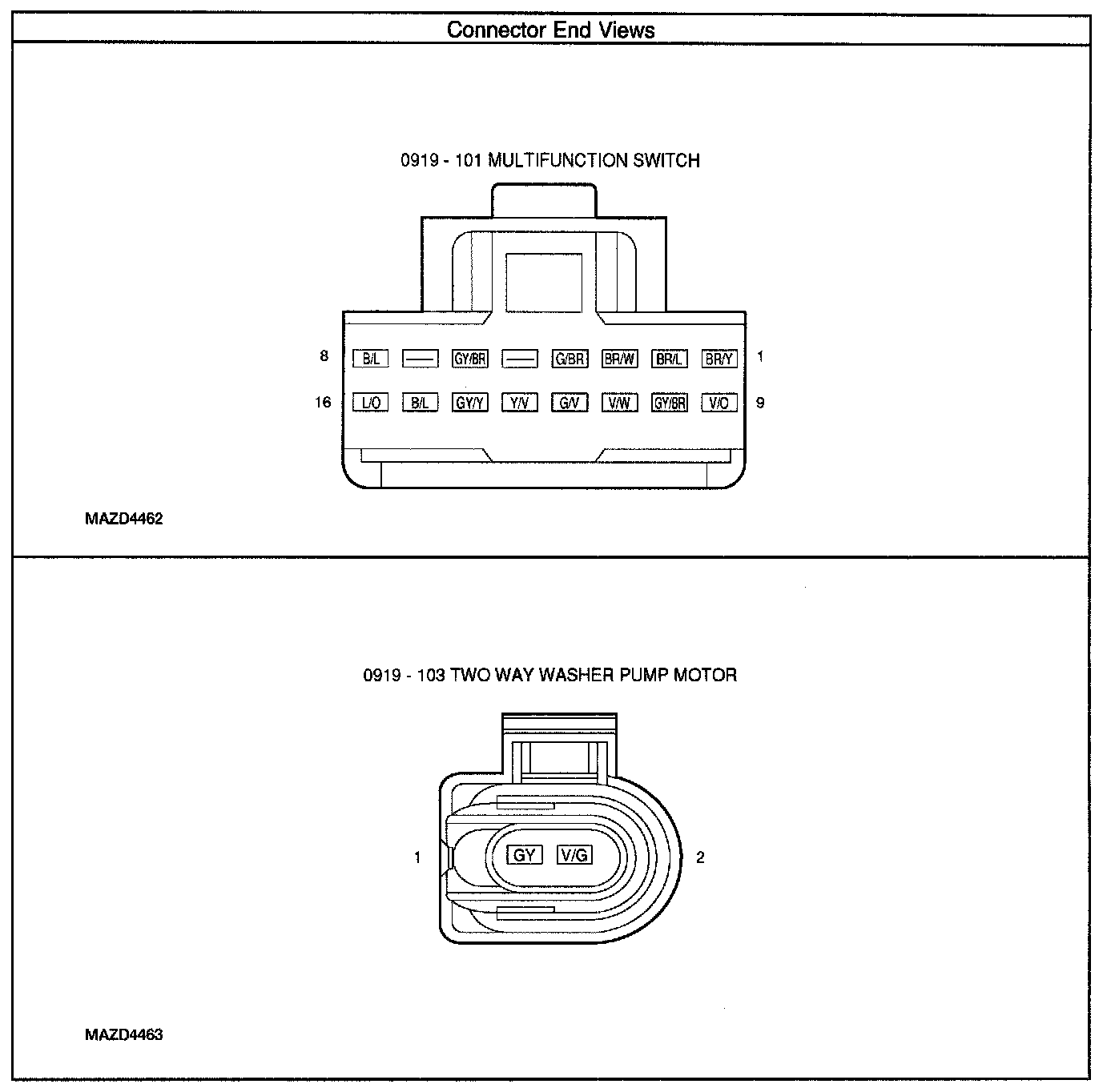 Connector End Views-Wiper/Washer Systems (Part 1):
