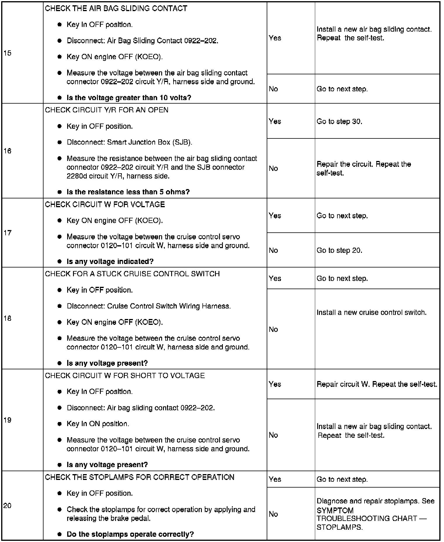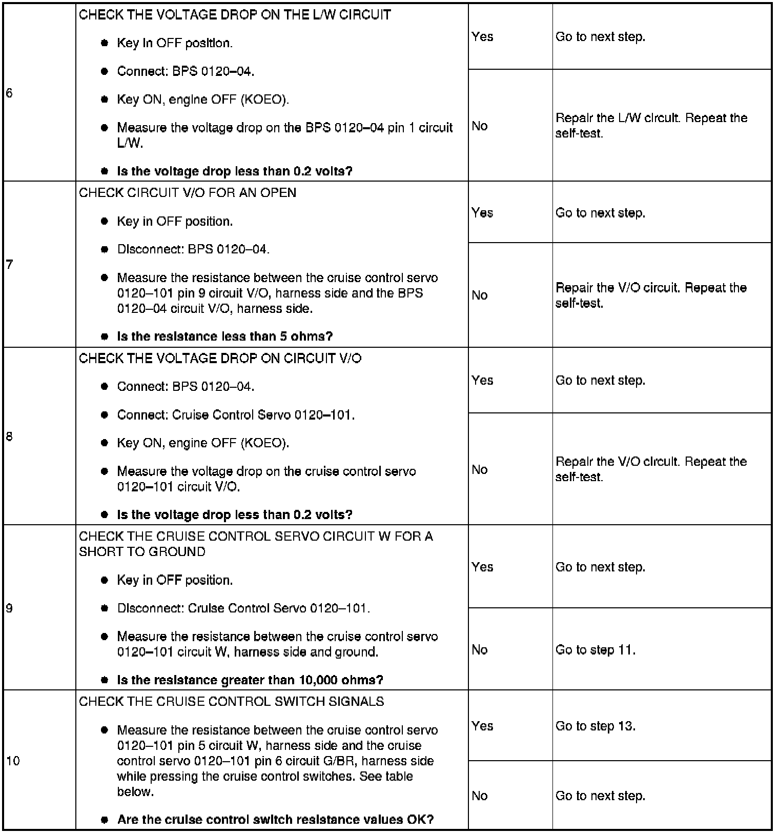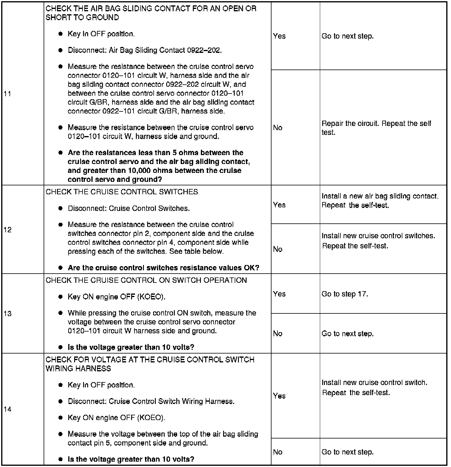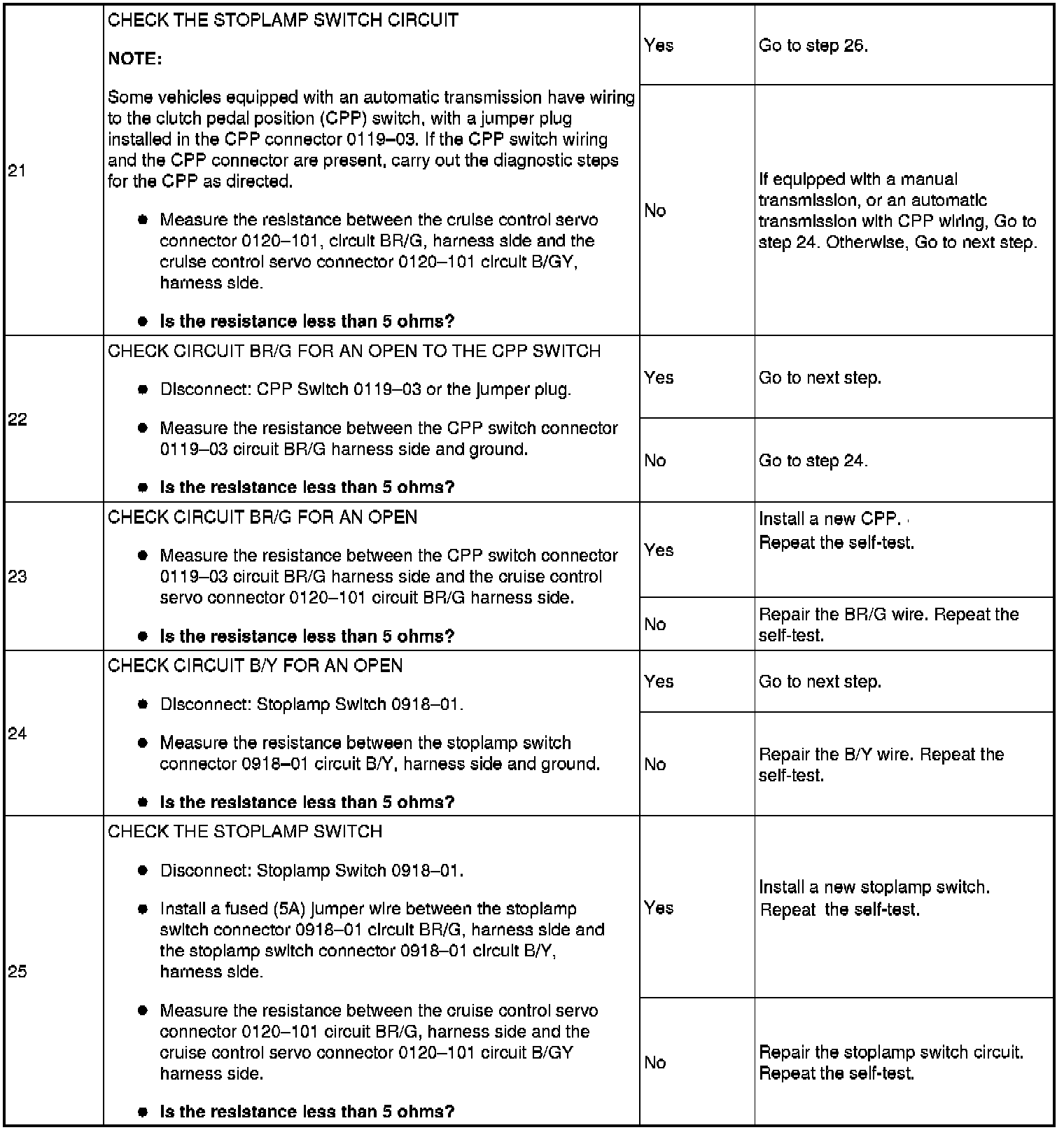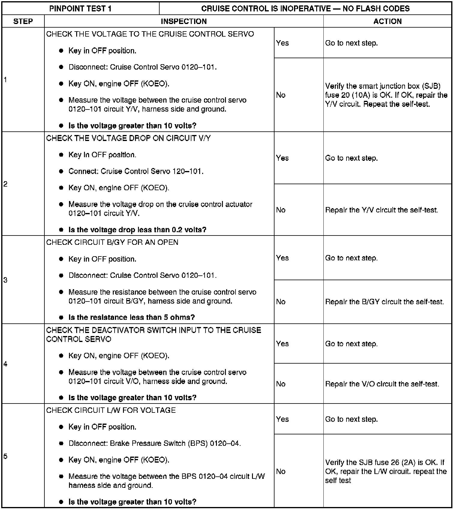 Pinpoint Test 1: Cruise Control Is Inoperative - No Flash Codes