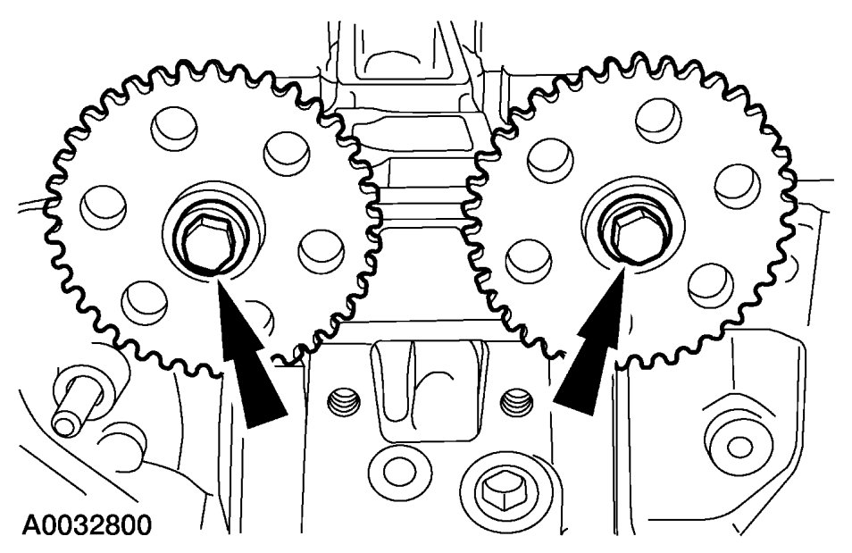 CAUTION: Do not rotate the camshafts. Damage to the valves and pistons can occur.If the camshaft sprockets were not removed, use the flats on the camshafts to prevent camshaft rotation and loosen the sprocket bolts.
