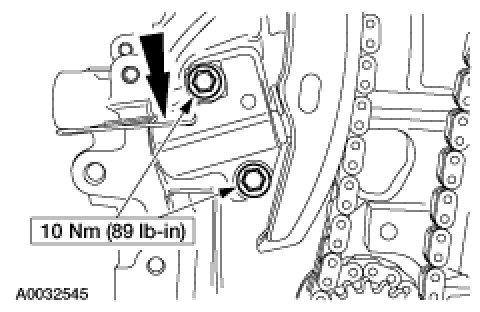 4. Install the LH timing chain guide and bolts.