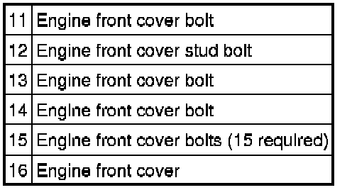 1. Install the front cover. Tighten the bolts in the sequence shown, to the following specifications:
