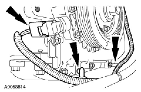 1. Disconnect the crankshaft position (CKP) sensor electrical connector and the wiring harness pin-type retainers.