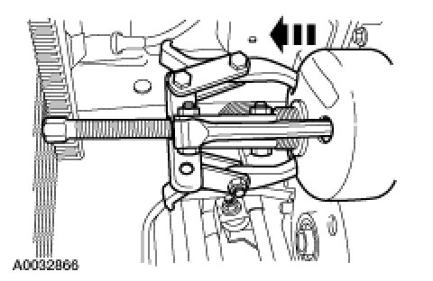 NOTE:This step is needed only if a new front cover is being installed.Using a three-jaw puller, remove the fan drive pulley.