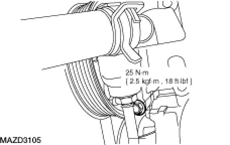 1. Install the water pump pulley.Tightening Torque:20 Nm {2.0 kgf-m, 15 ft-lbf}